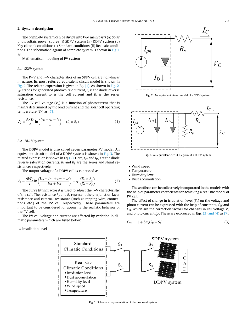 完整的系统可以分为两个主要部分。(a)太阳能光伏电源(i)SDPV系统(ii)DDPV系统;(b)主要气候条件(i)标准条件(ii)现实条件。图1显示了完整系统的原理图,光伏系统的数学建模。