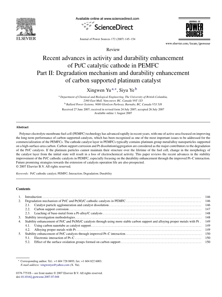 - Pt/C和Pt的降解机制(M)/C的质子交换膜燃料电池阴极催化剂.....146