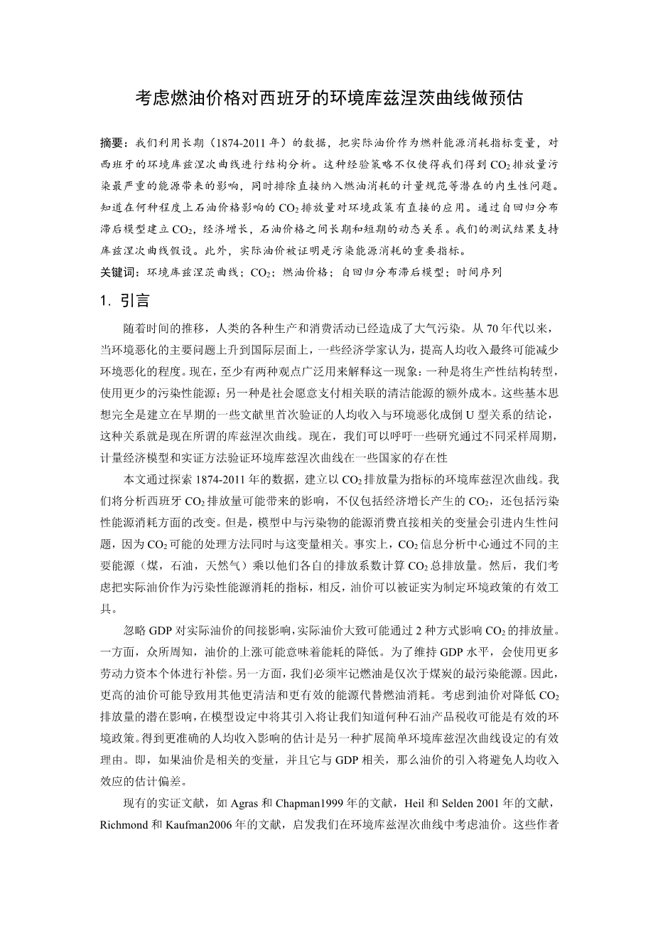 考虑燃油价格对西班牙的环境库兹涅茨曲线做预估外文翻译资料 2023-02-16 09:33:56 英语原文共 7 页,剩余内容已隐藏,支付完成后下载完整资料 英语译文共 10 页,剩余内容已隐藏,支付完成后下载完整资料 资料编号:[31641],资料为PDF文档或Word文档,PDF文档可免费转换为Word 您需要先支付 30元 才能查看全部内容!立即支付 发小红书推广免费获取该资料资格。点击链接进入获取推广文案即可: Ai一键组稿 | 降AI率 | 降重复率 | 论文一键排版 PREVIOUS NEXT 您可能感兴趣的文章 基于决策树算法的信用卡违约预测研究文献综述 干旱、半干旱和湿润地区降水量的遗传算法优化ANN模拟研究文献综述 基于VAR模型的京津冀旅游业与雾霾污染的关系研究文献综述 空气质量的时序预测与地区差异性统计分析开题报告 基于主成分分析和聚类分析的葡萄酒分类判别开题报告 基于基因表达数据的函数型数据聚类方法分析开题报告 基于统计学习的MOBA类游戏深度信息挖掘开题报告 基于随机过程的全国二线城市空气质量分析开题报告 高层次科技人才的履历分析与国际比较开题报告 各地区高等教育发展状况的统计分析及预测开题报告
