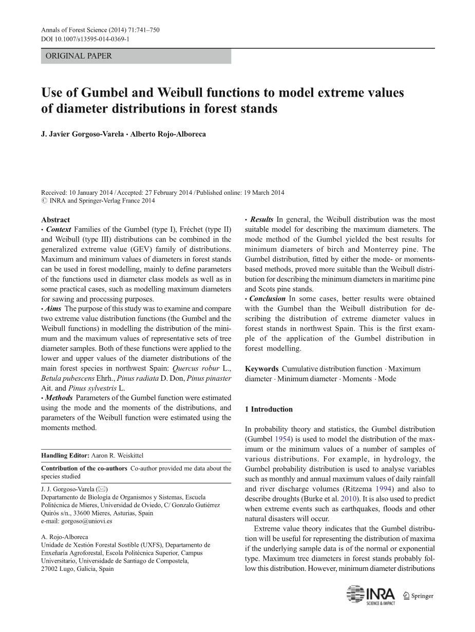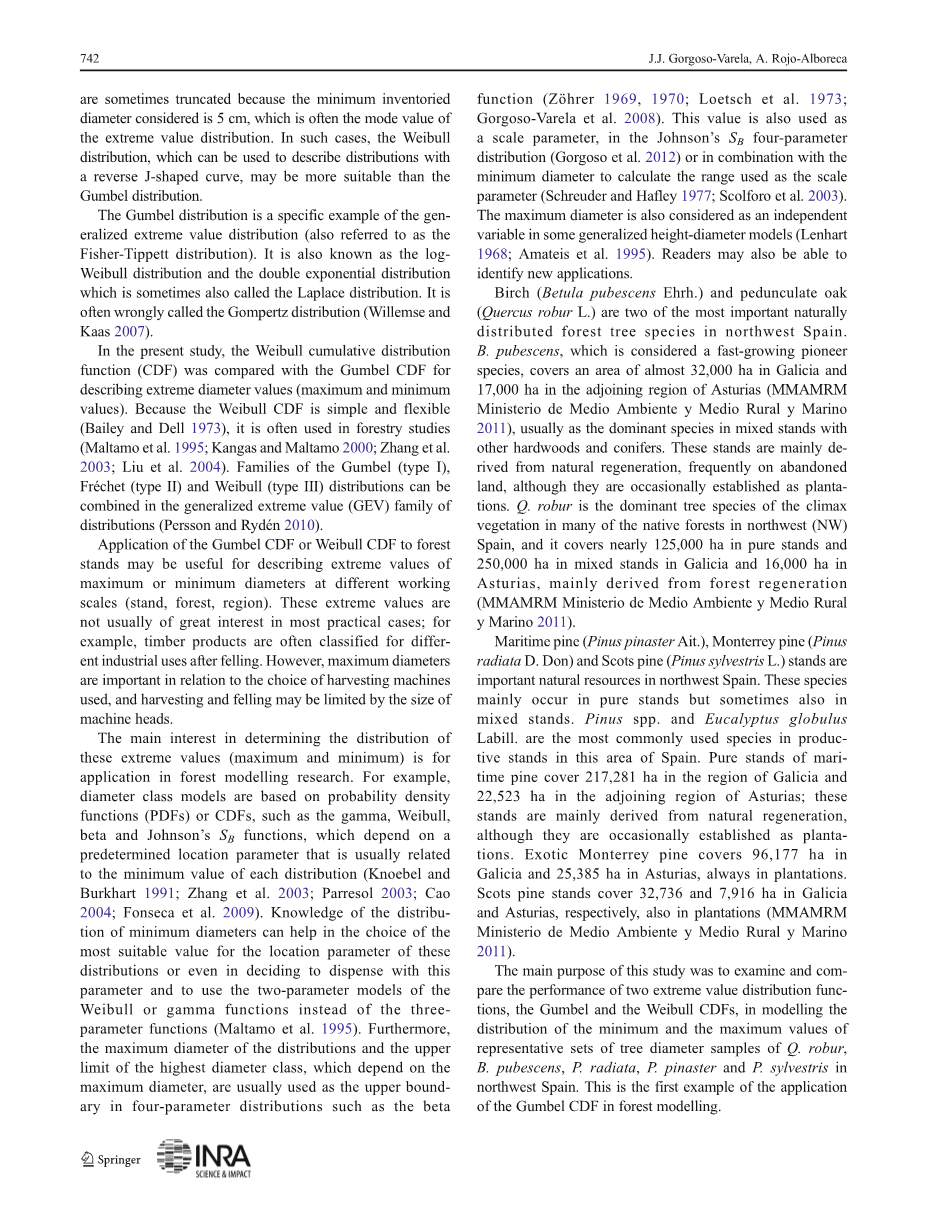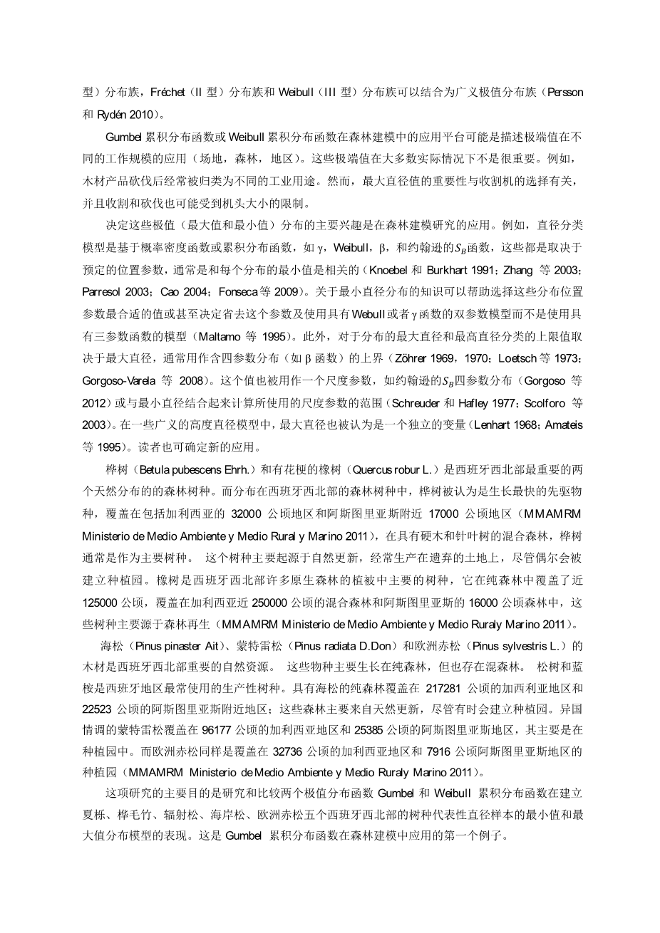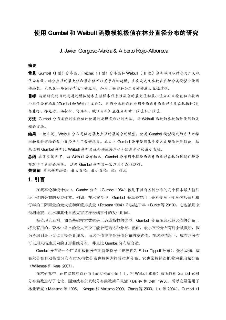 使用Gumbel和Weibull函数模拟极值在林分直径分布的研究外文翻译资料