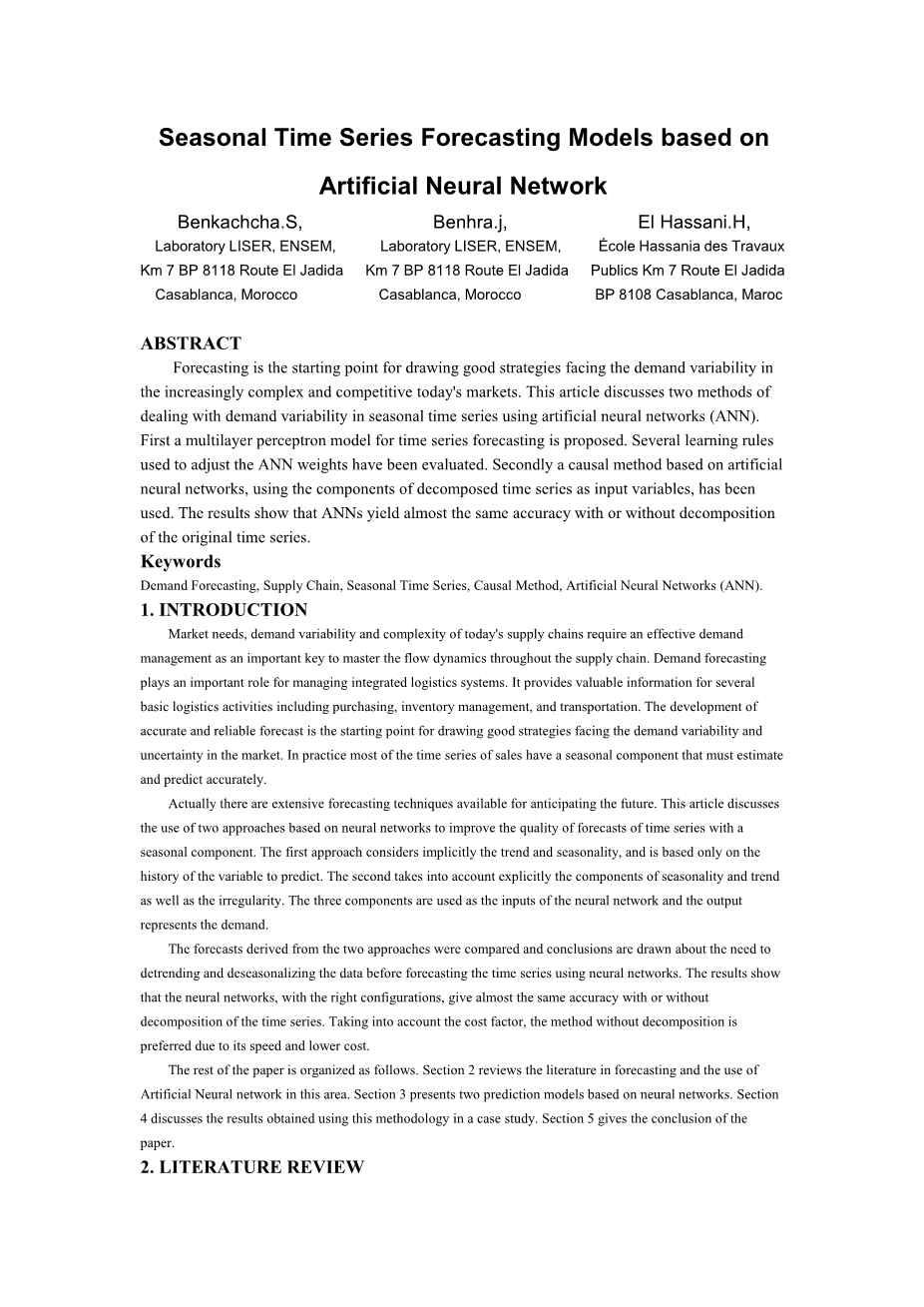 基于人工神经网络的季节时间序列预测模型外文翻译资料 2023-03-11 10:08:43 英语原文共 23 页,剩余内容已隐藏,支付完成后下载完整资料 英语原文共 9 页,剩余内容已隐藏,支付完成后下载完整资料 资料编号:[268348],资料为PDF文档或Word文档,PDF文档可免费转换为Word 您需要先支付 30元 才能查看全部内容!立即支付 发小红书推广免费获取该资料资格。点击链接进入获取推广文案即可: Ai一键组稿 | 降AI率 | 降重复率 | 论文一键排版 PREVIOUS NEXT 您可能感兴趣的文章 基于决策树算法的信用卡违约预测研究文献综述 干旱、半干旱和湿润地区降水量的遗传算法优化ANN模拟研究文献综述 基于VAR模型的京津冀旅游业与雾霾污染的关系研究文献综述 空气质量的时序预测与地区差异性统计分析开题报告 基于主成分分析和聚类分析的葡萄酒分类判别开题报告 基于基因表达数据的函数型数据聚类方法分析开题报告 基于统计学习的MOBA类游戏深度信息挖掘开题报告 基于随机过程的全国二线城市空气质量分析开题报告 高层次科技人才的履历分析与国际比较开题报告 各地区高等教育发展状况的统计分析及预测开题报告