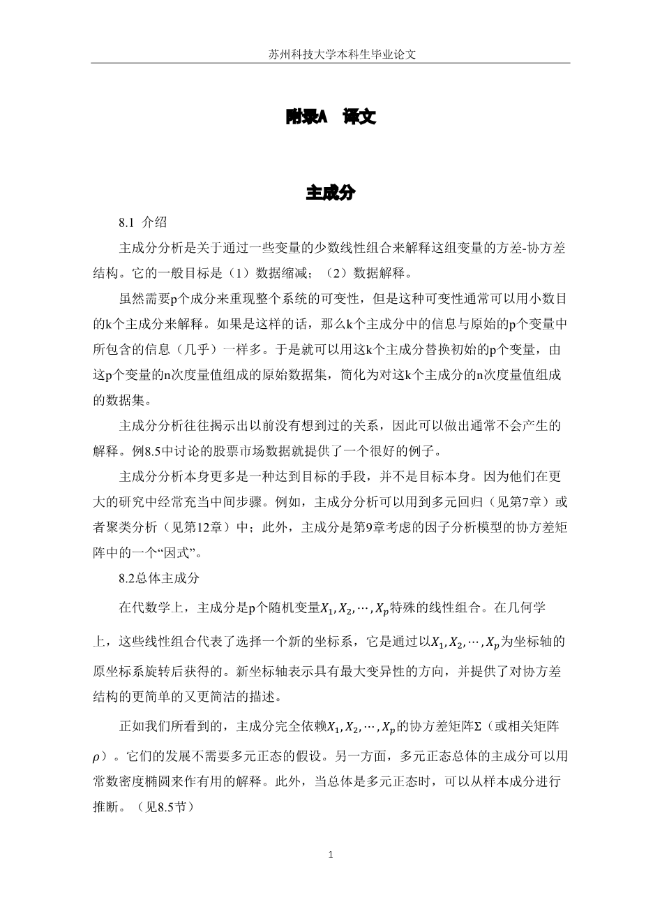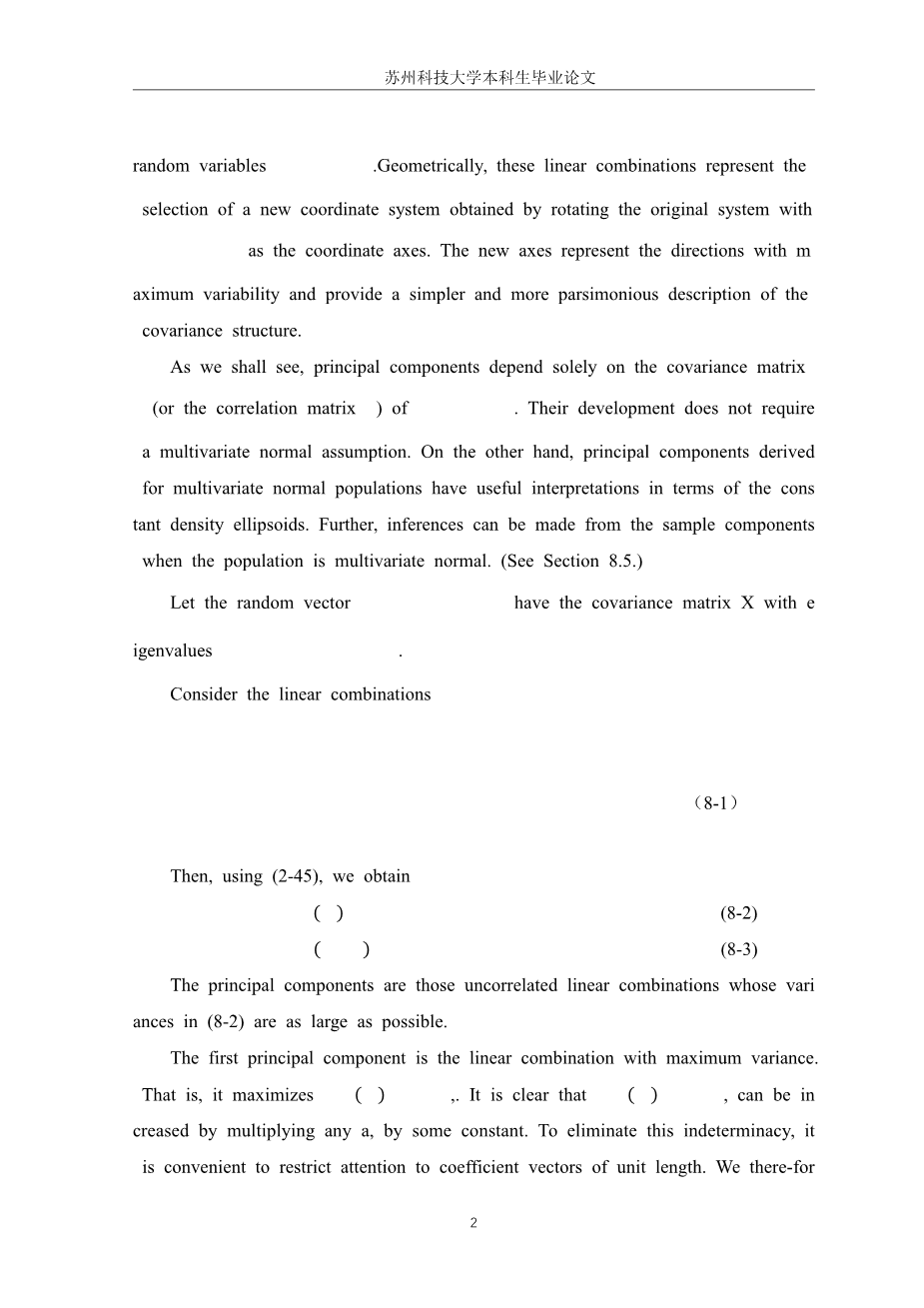 主成分外文翻译资料 2023-04-01 15:38:27 英语原文共 18 页,剩余内容已隐藏,支付完成后下载完整资料 英语译文共 14 页,剩余内容已隐藏,支付完成后下载完整资料 资料编号:[588150],资料为PDF文档或Word文档,PDF文档可免费转换为Word 您需要先支付 30元 才能查看全部内容!立即支付 发小红书推广免费获取该资料资格。点击链接进入获取推广文案即可: Ai一键组稿 | 降AI率 | 降重复率 | 论文一键排版 PREVIOUS NEXT 您可能感兴趣的文章 基于决策树算法的信用卡违约预测研究文献综述 干旱、半干旱和湿润地区降水量的遗传算法优化ANN模拟研究文献综述 基于VAR模型的京津冀旅游业与雾霾污染的关系研究文献综述 空气质量的时序预测与地区差异性统计分析开题报告 基于主成分分析和聚类分析的葡萄酒分类判别开题报告 基于基因表达数据的函数型数据聚类方法分析开题报告 基于统计学习的MOBA类游戏深度信息挖掘开题报告 基于随机过程的全国二线城市空气质量分析开题报告 高层次科技人才的履历分析与国际比较开题报告 各地区高等教育发展状况的统计分析及预测开题报告
