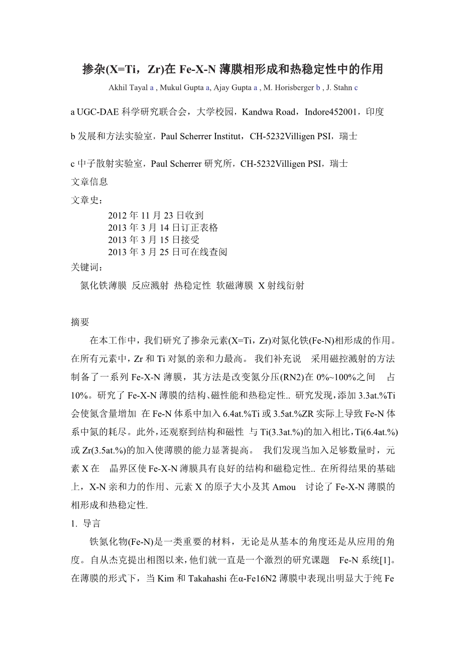 掺杂(X=Ti, Zr)在 Fe-X-N薄膜相形成和热稳定性中的作用外文翻译资料 2023-03-09 09:17:46 英语原文共 11 页,剩余内容已隐藏,支付完成后下载完整资料 英语译文共 13 页,剩余内容已隐藏,支付完成后下载完整资料 资料编号:[409488],资料为PDF文档或Word文档,PDF文档可免费转换为Word 您需要先支付 30元 才能查看全部内容!立即支付 发小红书推广免费获取该资料资格。点击链接进入获取推广文案即可: Ai一键组稿 | 降AI率 | 降重复率 | 论文一键排版 PREVIOUS NEXT 您可能感兴趣的文章 一种基于多调制格式的变速率接入网关键技术研究文献综述 基于有机薄膜调控无机钙盐的形成文献综述 微波快速加热表面材料强化开题报告 基于随机微分方法研究ICME引起的FD事件文献综述 流场成分对莫尔层析诊断的影响研究文献综述 PET误差随时间变化关系研究开题报告 相对论重离子碰撞中净质子数高阶矩与其误差开题报告 电场对材料带隙的调控文献综述 红外二极管泵浦条件下Yb、Ho:GGG逐步上转换的可见-近红外发光外文翻译资料 高中物理学中自我效能状态的性别差异外文翻译资料