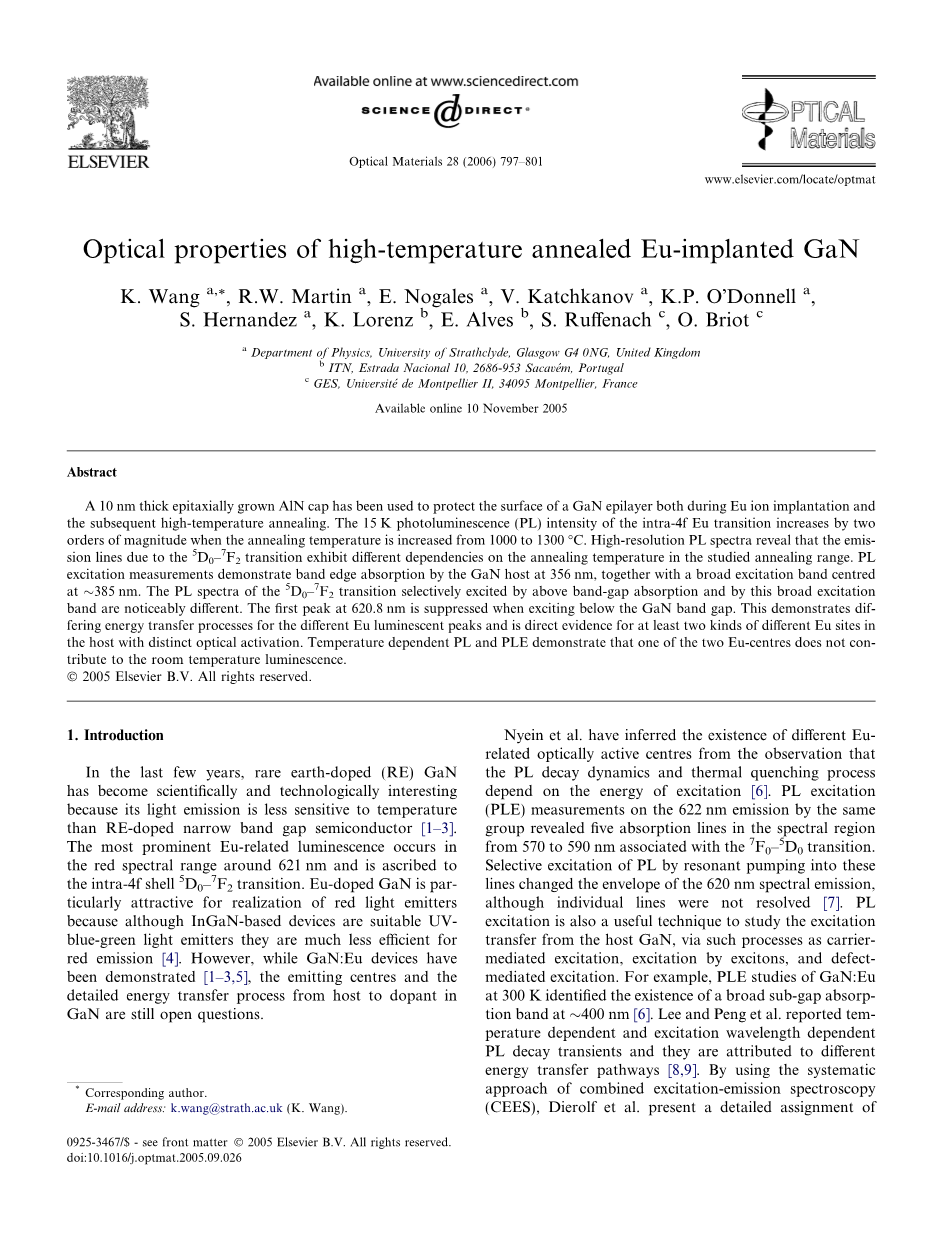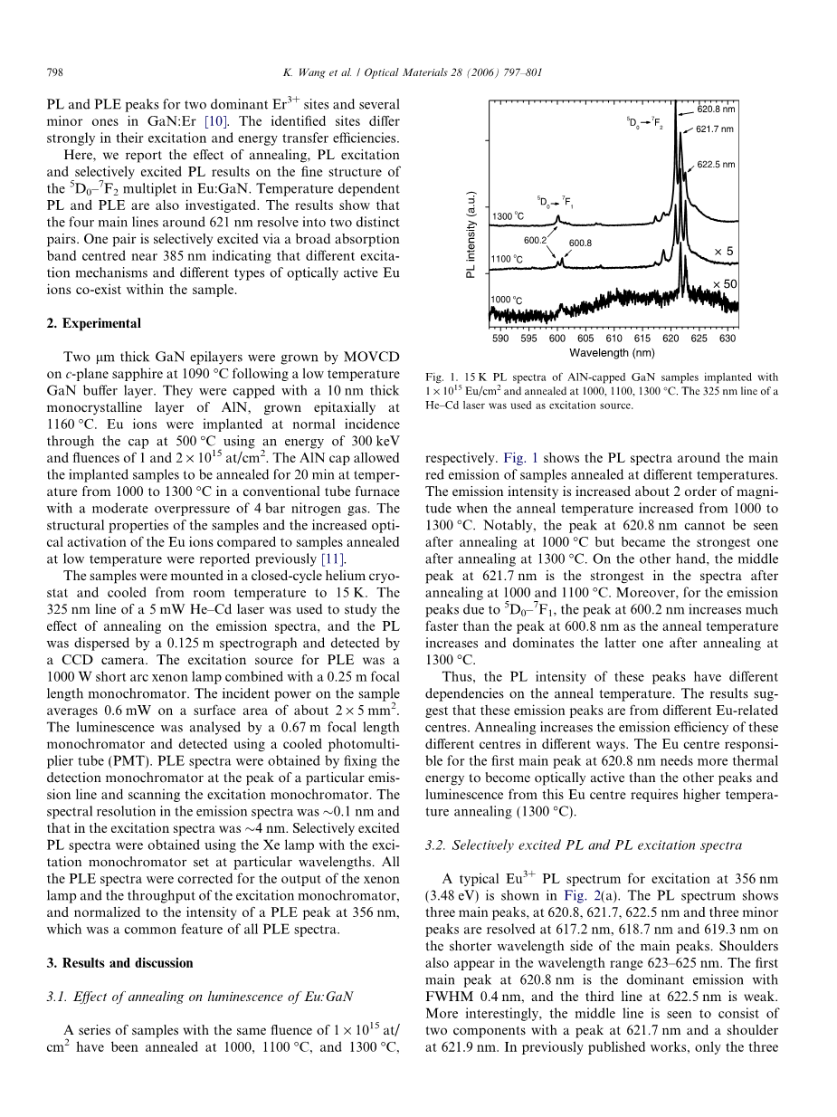 高温退火铕注入GaN的光学特性外文翻译资料
