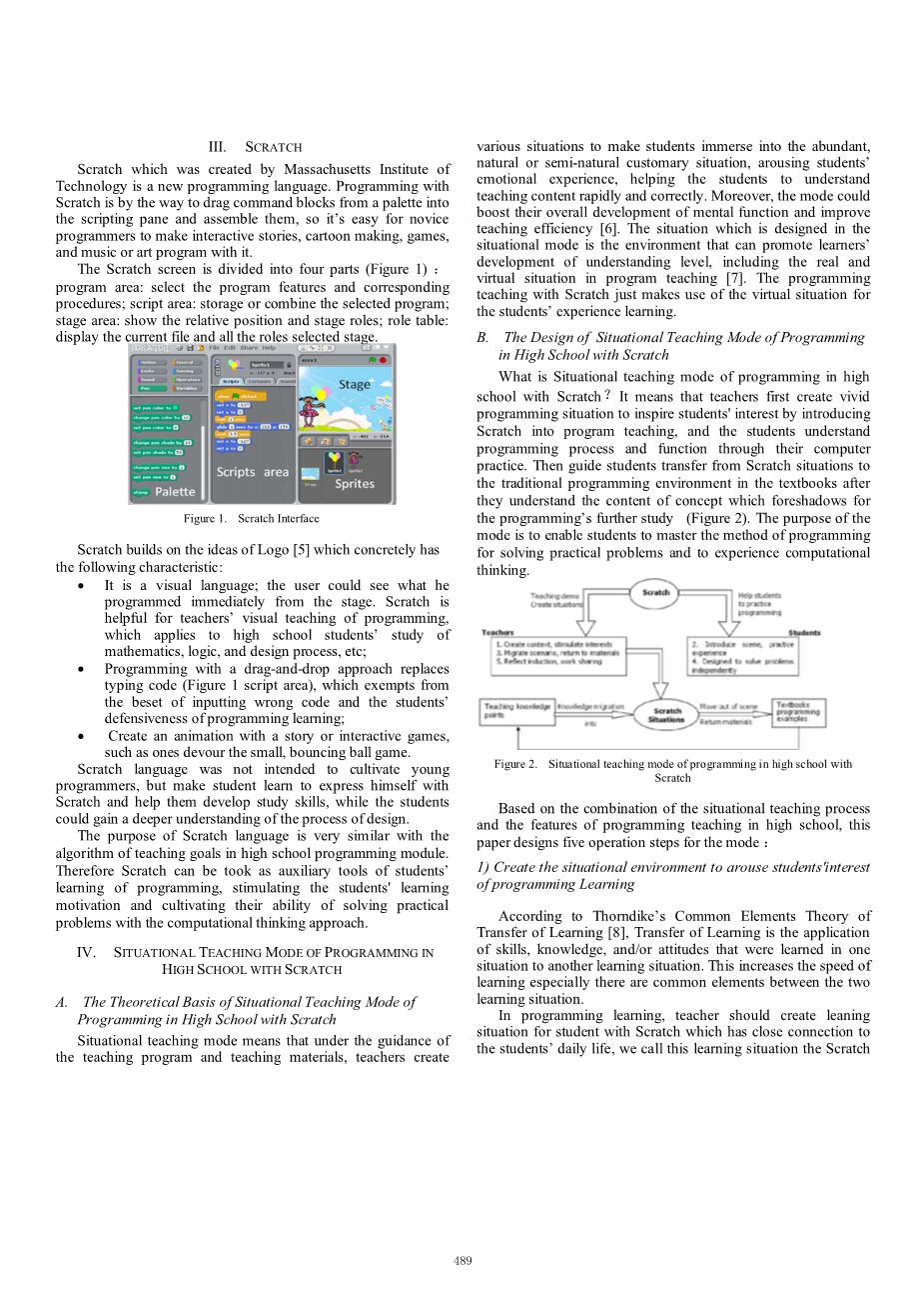 B.基于Scratch的高中编程情境教学模式的设计