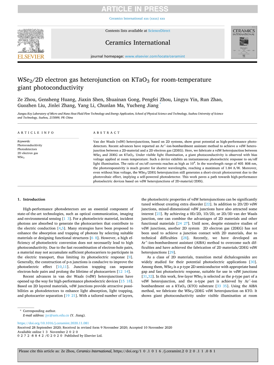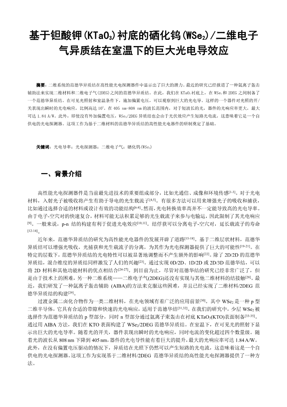 基于钽酸钾(KTaO3)衬底的硒化钨(WSe2)/二维电子气异质结在室温下的巨大光电导效应外文翻译资料