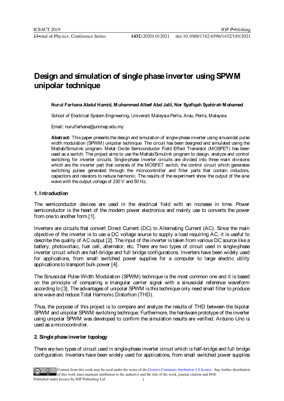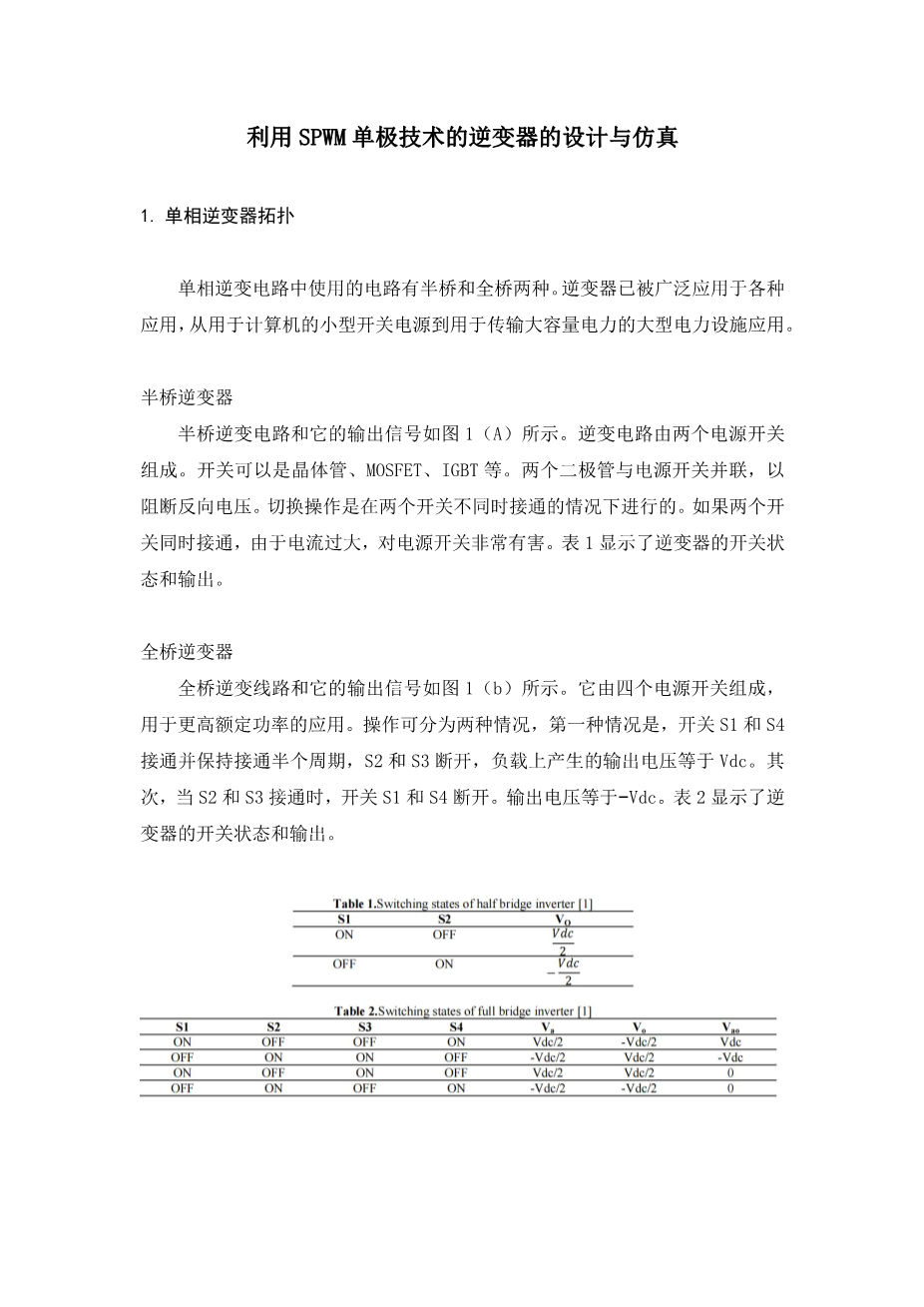 利用SPWM单极技术的逆变器的设计与仿真外文翻译资料