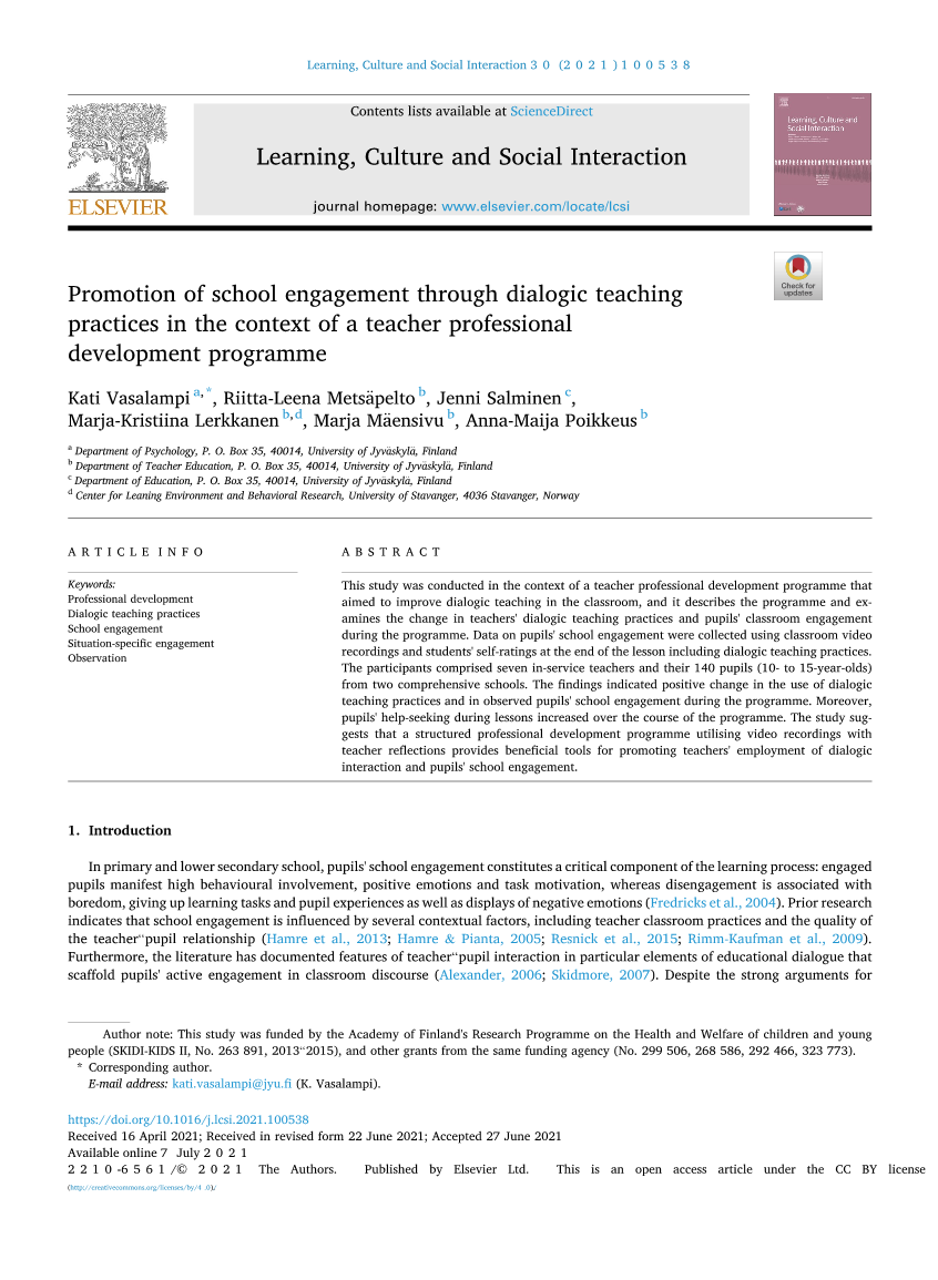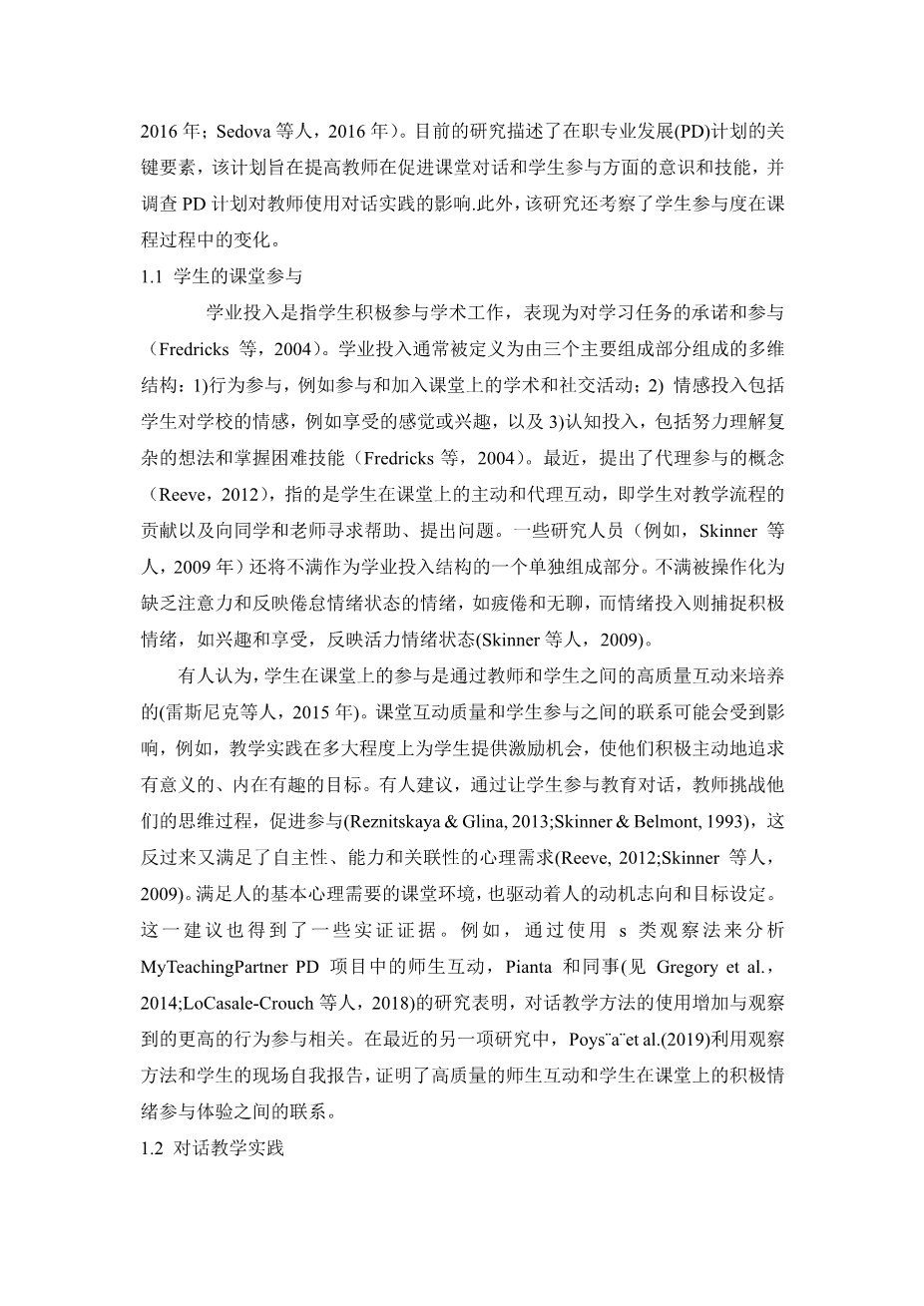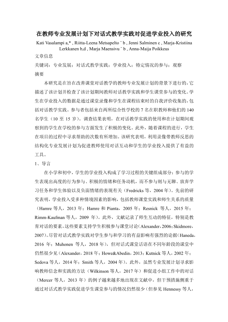 在教师专业发展计划下对话式教学实践对促进学业投入的研究外文翻译资料