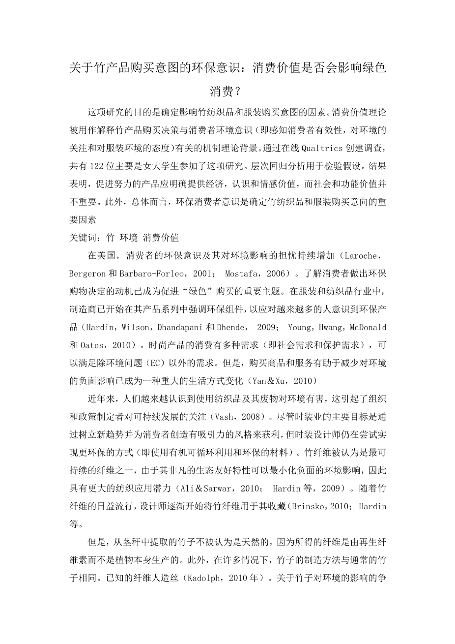 关于竹产品购买意图的环保意识:消费价值是否会影响绿色消费?外文翻译资料 2023-02-05 21:37:21 英语原文共 9 页,剩余内容已隐藏,支付完成后下载完整资料 英语译文共 7 页,剩余内容已隐藏,支付完成后下载完整资料 资料编号:[259614],资料为PDF文档或Word文档,PDF文档可免费转换为Word 您需要先支付 30元 才能查看全部内容!立即支付 发小红书推广免费获取该资料资格。点击链接进入获取推广文案即可: Ai一键组稿 | 降AI率 | 降重复率 | 论文一键排版 PREVIOUS NEXT 您可能感兴趣的文章 腿部伤残人士助行器设计文献综述 微电影创作与黄鹤楼文献综述 交互装置艺术中山水画天人合一意境的营造探索开题报告 新媒体技术对传统山水画创作方式的影响与改变开题报告 绳与木组合拼接启智玩具设计开题报告 论品牌视觉元素在商业展示空间设计中的体现——以香奈儿专卖店展示设计为例文献综述 论科普展中的信息技术应用与设计表达开题报告 现代家具展厅展陈设计风格协调性研究开题报告 当代家具展厅空间设计研究—以“爱家”家具展厅设计为例开题报告 基于体验式营销的快闪店展示设计开题报告