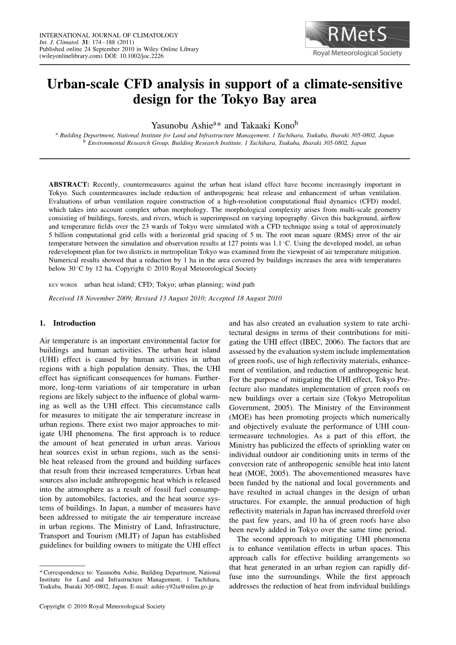 在支持气候敏感设计的东京湾地区城市规模的CFD分析