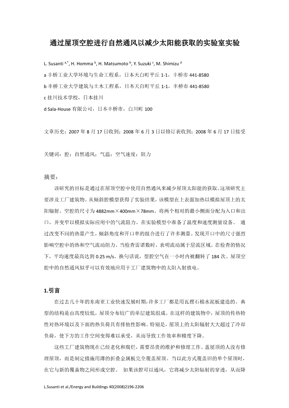 通过屋顶空腔进行自然通风以减少太阳能获取的实验室实验外文翻译资料