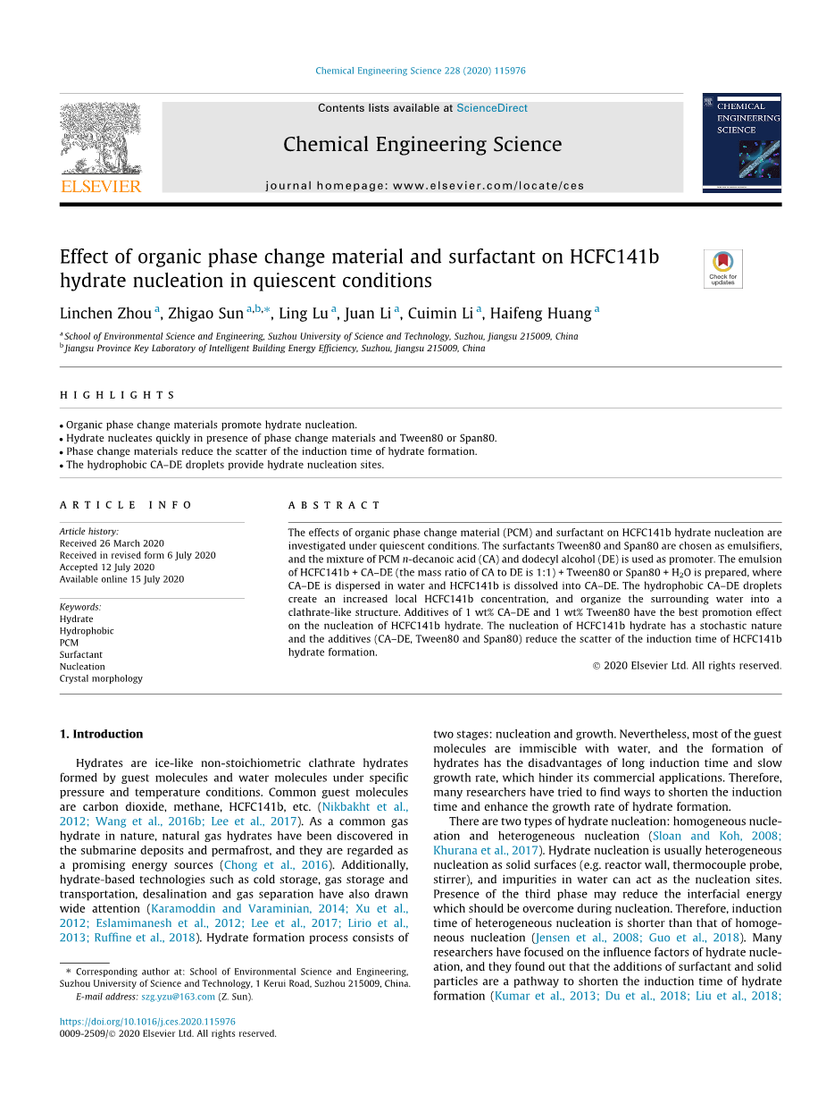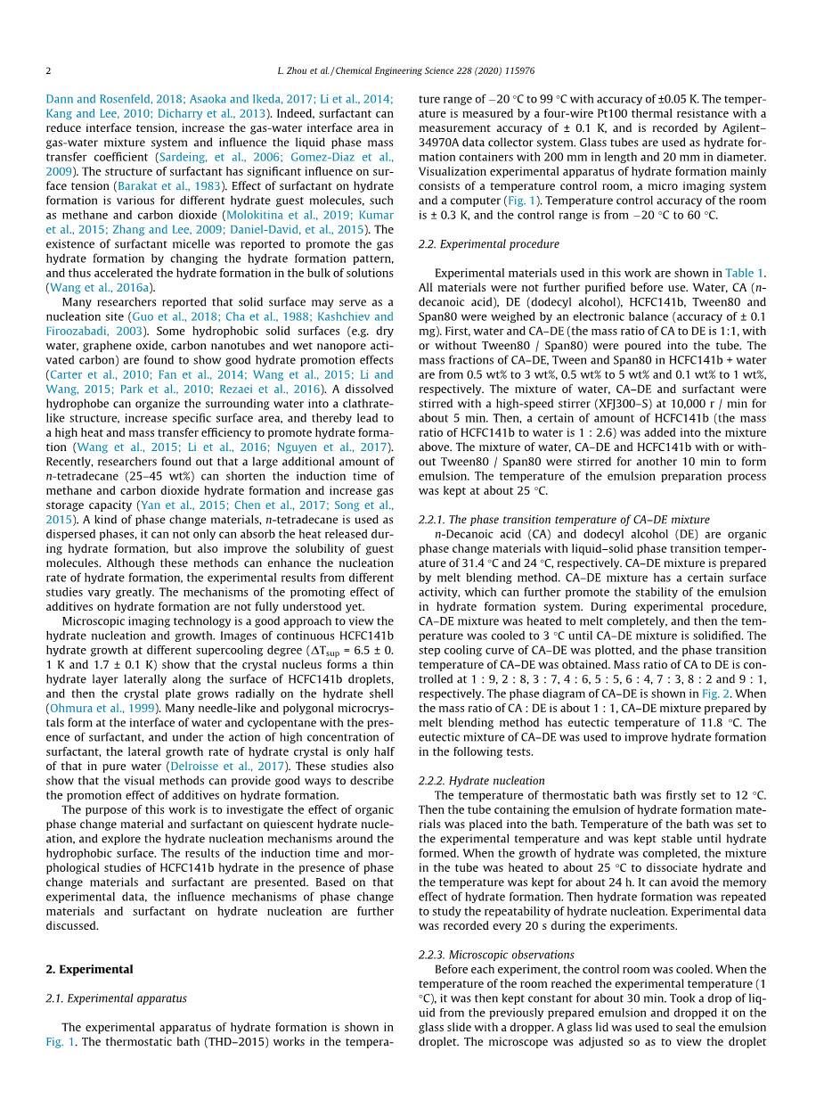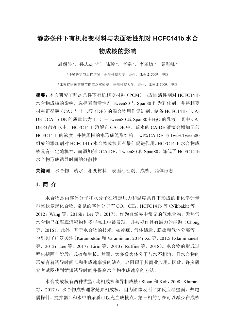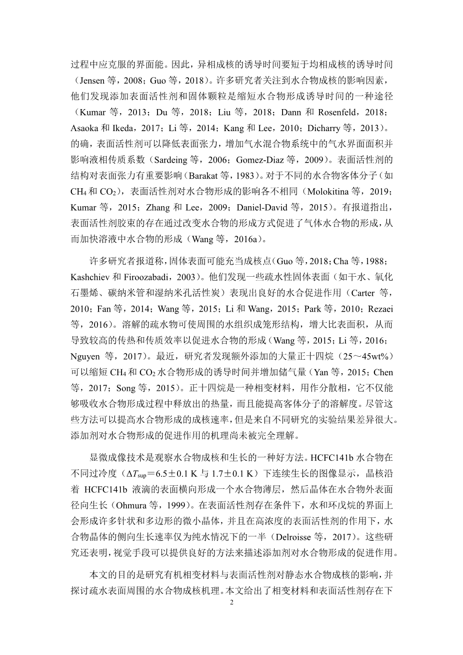 静态条件下有机相变材料与表面活性剂对HCFC141b水合物成核的影响外文翻译资料