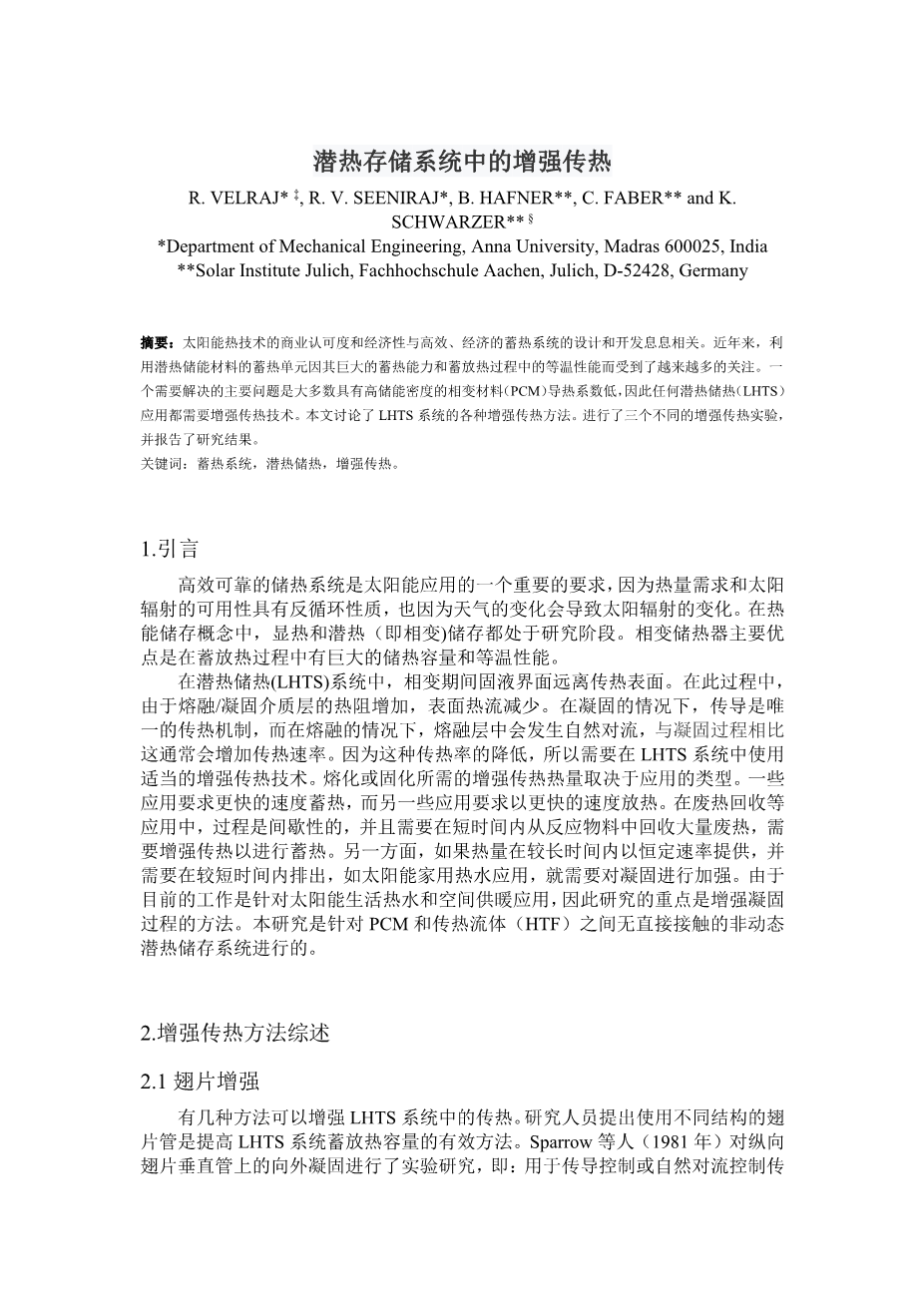 潜热存储系统中的增强传热外文翻译资料