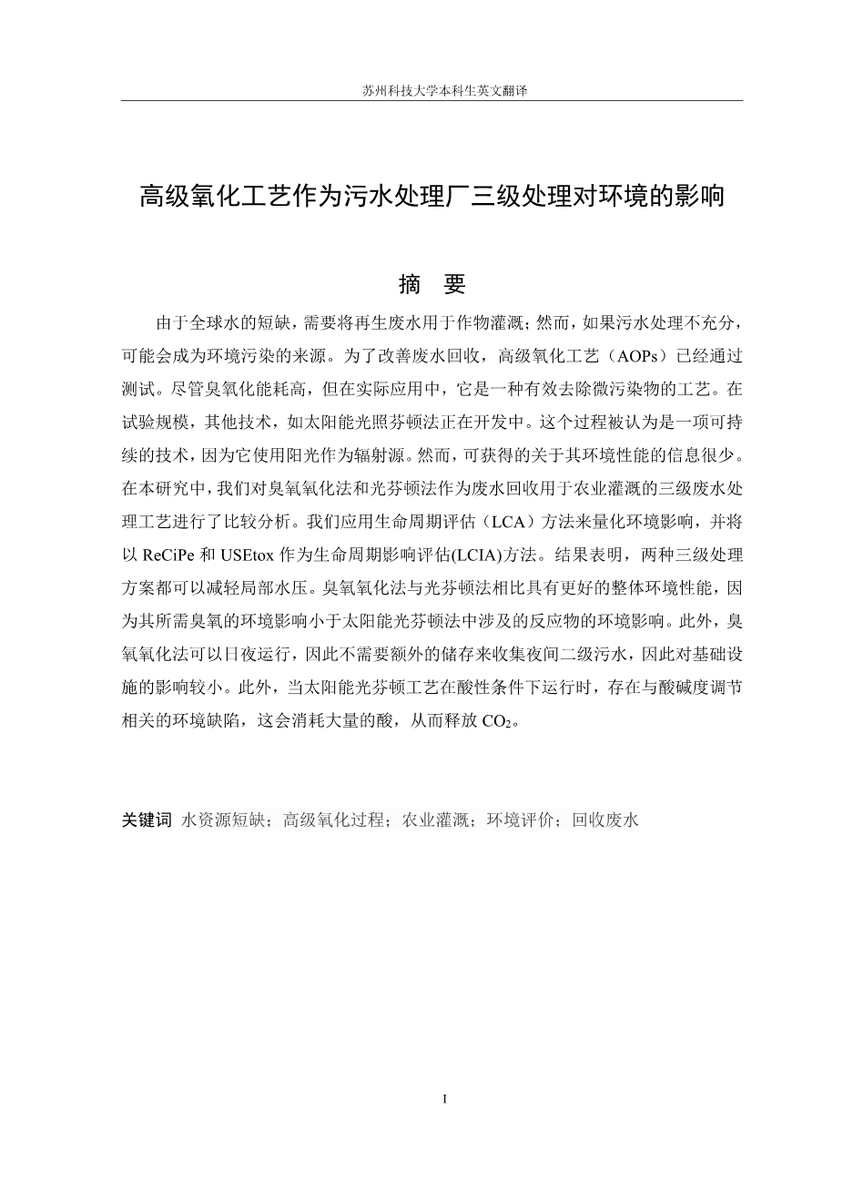 高级氧化工艺作为污水处理厂三级处理对环境的影响外文翻译资料 2023-02-09 13:22:18 英语原文共 10 页,剩余内容已隐藏,支付完成后下载完整资料 英语译文共 26 页,剩余内容已隐藏,支付完成后下载完整资料 资料编号:[414322],资料为PDF文档或Word文档,PDF文档可免费转换为Word 您需要先支付 30元 才能查看全部内容!立即支付 发小红书推广免费获取该资料资格。点击链接进入获取推广文案即可: Ai一键组稿 | 降AI率 | 降重复率 | 论文一键排版 PREVIOUS NEXT 您可能感兴趣的文章 印染厂废水处理工艺设计开题报告 改性生物炭对四环素的吸附开题报告 湖北省襄阳市谷城县城关镇南部排水工程设计开题报告 洋坪镇城区给水工程设计开题报告 西宁电力大厦建筑给排水设计开题报告 四川省广安市鼎屏镇排水工程设计文献综述 林州市城区排水管网及污水处理系统设计文献综述 越秀星空大楼给排水工程设计文献综述 湖北省黄石某镇排水工程设计开题报告 德国卢萨蒂亚酸性开采湖泊沉积物中磷的迁移率外文翻译资料