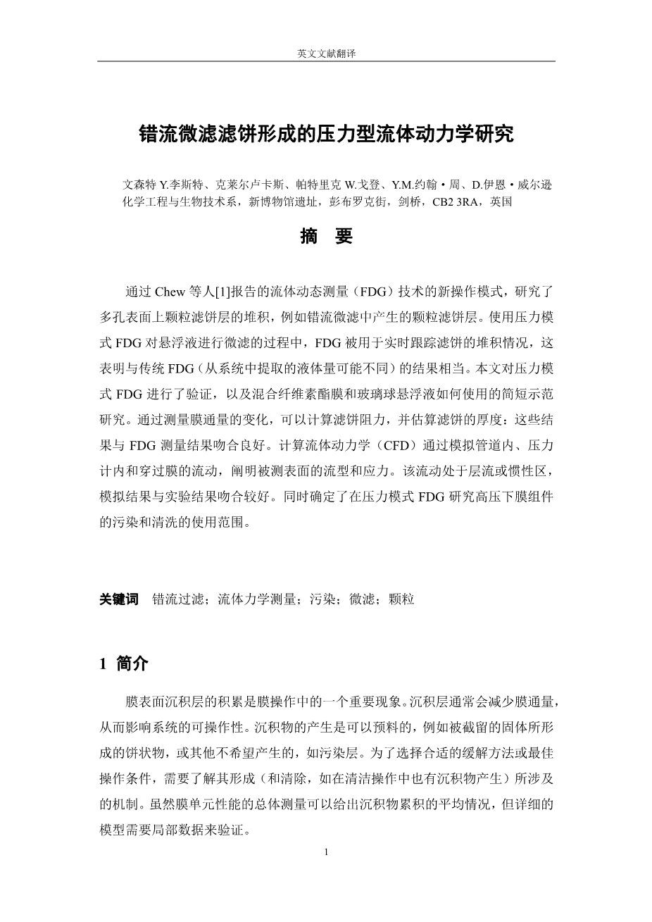 错流微滤滤饼形成的压力型流体动力学研究外文翻译资料 2023-03-03 17:33:29 英语原文共 10 页,剩余内容已隐藏,支付完成后下载完整资料 英语译文共 26 页,剩余内容已隐藏,支付完成后下载完整资料 资料编号:[405361],资料为PDF文档或Word文档,PDF文档可免费转换为Word 您需要先支付 30元 才能查看全部内容!立即支付 发小红书推广免费获取该资料资格。点击链接进入获取推广文案即可: Ai一键组稿 | 降AI率 | 降重复率 | 论文一键排版 PREVIOUS NEXT 您可能感兴趣的文章 印染厂废水处理工艺设计开题报告 改性生物炭对四环素的吸附开题报告 湖北省襄阳市谷城县城关镇南部排水工程设计开题报告 洋坪镇城区给水工程设计开题报告 西宁电力大厦建筑给排水设计开题报告 四川省广安市鼎屏镇排水工程设计文献综述 林州市城区排水管网及污水处理系统设计文献综述 越秀星空大楼给排水工程设计文献综述 湖北省黄石某镇排水工程设计开题报告 德国卢萨蒂亚酸性开采湖泊沉积物中磷的迁移率外文翻译资料