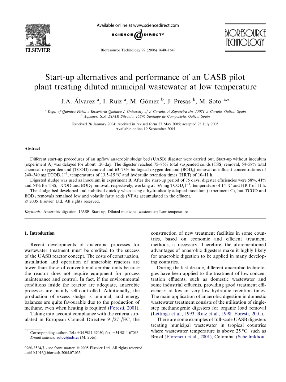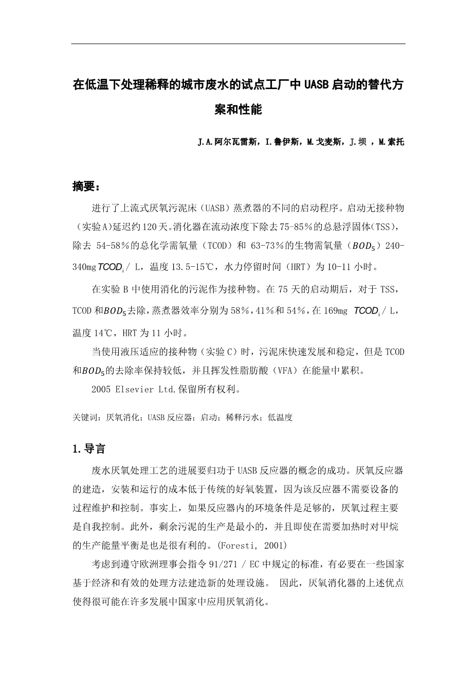 在低温下处理稀释的城市废水的试点工厂中UASB启动的替代方案和性能外文翻译资料 2023-05-31 19:38:14 英语原文共 10 页,剩余内容已隐藏,支付完成后下载完整资料 英语译文共 16 页,剩余内容已隐藏,支付完成后下载完整资料 资料编号:[612430],资料为PDF文档或Word文档,PDF文档可免费转换为Word 您需要先支付 30元 才能查看全部内容!立即支付 发小红书推广免费获取该资料资格。点击链接进入获取推广文案即可: Ai一键组稿 | 降AI率 | 降重复率 | 论文一键排版 PREVIOUS NEXT 您可能感兴趣的文章 印染厂废水处理工艺设计开题报告 改性生物炭对四环素的吸附开题报告 湖北省襄阳市谷城县城关镇南部排水工程设计开题报告 洋坪镇城区给水工程设计开题报告 西宁电力大厦建筑给排水设计开题报告 四川省广安市鼎屏镇排水工程设计文献综述 林州市城区排水管网及污水处理系统设计文献综述 越秀星空大楼给排水工程设计文献综述 湖北省黄石某镇排水工程设计开题报告 德国卢萨蒂亚酸性开采湖泊沉积物中磷的迁移率外文翻译资料