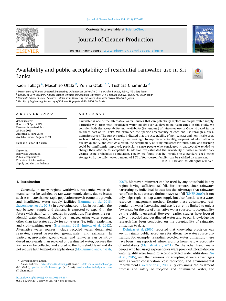 雨水是可替代城市供水的水源之一,特别是在供水不足的地区,如亚洲发展中城市。在这项研究中,我们考虑了位于斯里兰卡南部的加勒的雨水使用的可接受性和可用性(即数量)。我们通过问卷调查来检验每种最终用途的具体可接受性。调查结果显示,非接触和非摄入使用的可接受性,如户外,厕所,洗衣房的使用是高的。为了提高可接受性,我们提供了关于质量、数量和成本的信息。因此,雨水用于厕所、浴室和洗浴是可以接受的可以显著改善,特别是因为认为雨水不可接受的人往往会改变他们的态度。此外,我们使用概率模拟来估计雨水收集的可用性。最后,我们发现通过引入标准大小的水储水箱,90%的四口之家的厕所用水需求可通过雨水来满足。