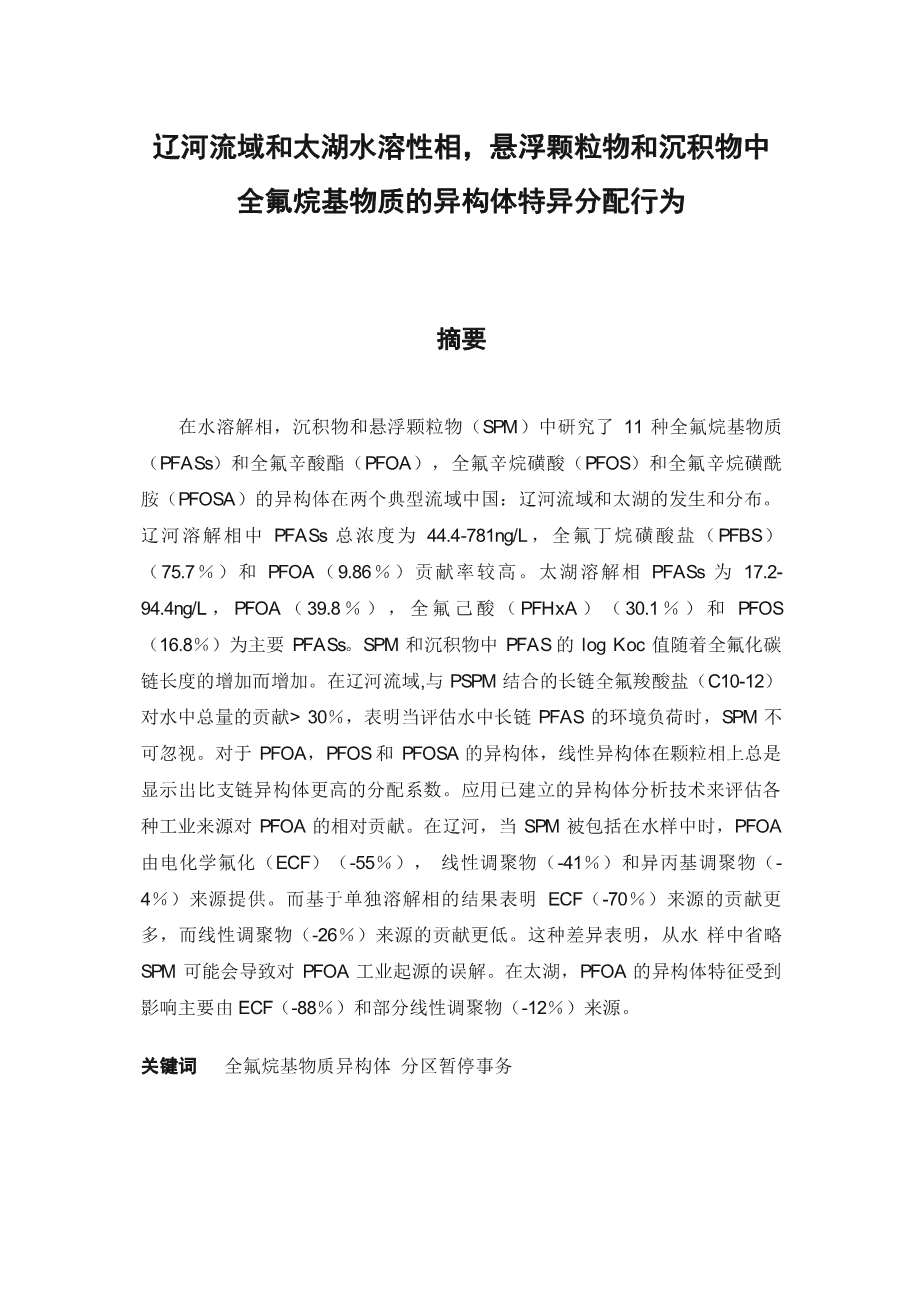 辽河流域和太湖水溶性相,悬浮颗粒物和沉积物中全氟烷基物质的异构体特异分配行为外文翻译资料 2023-09-06 10:51:44 英语原文共 10 页,剩余内容已隐藏,支付完成后下载完整资料 英语译文共 25 页,剩余内容已隐藏,支付完成后下载完整资料 资料编号:[608693],资料为PDF文档或Word文档,PDF文档可免费转换为Word 您需要先支付 30元 才能查看全部内容!立即支付 发小红书推广免费获取该资料资格。点击链接进入获取推广文案即可: Ai一键组稿 | 降AI率 | 降重复率 | 论文一键排版 PREVIOUS NEXT 您可能感兴趣的文章 印染厂废水处理工艺设计开题报告 改性生物炭对四环素的吸附开题报告 湖北省襄阳市谷城县城关镇南部排水工程设计开题报告 洋坪镇城区给水工程设计开题报告 西宁电力大厦建筑给排水设计开题报告 四川省广安市鼎屏镇排水工程设计文献综述 林州市城区排水管网及污水处理系统设计文献综述 越秀星空大楼给排水工程设计文献综述 湖北省黄石某镇排水工程设计开题报告 德国卢萨蒂亚酸性开采湖泊沉积物中磷的迁移率外文翻译资料