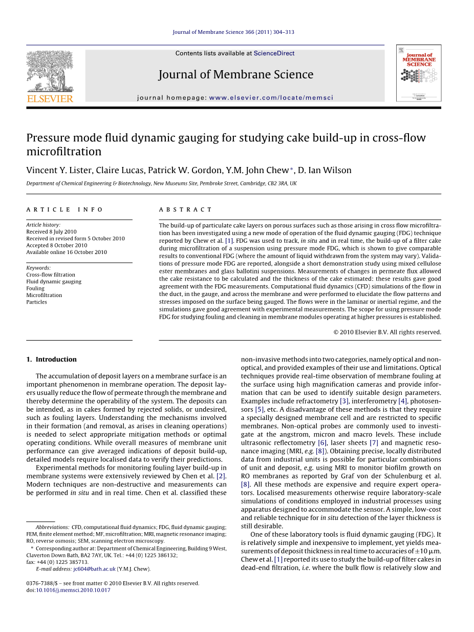 关键词 流体动态测量(FDG)、压力流FDG、膜、滤饼、CFD建模