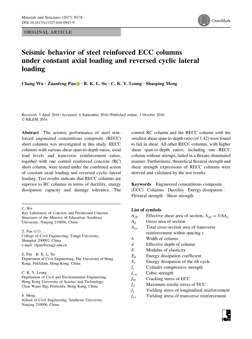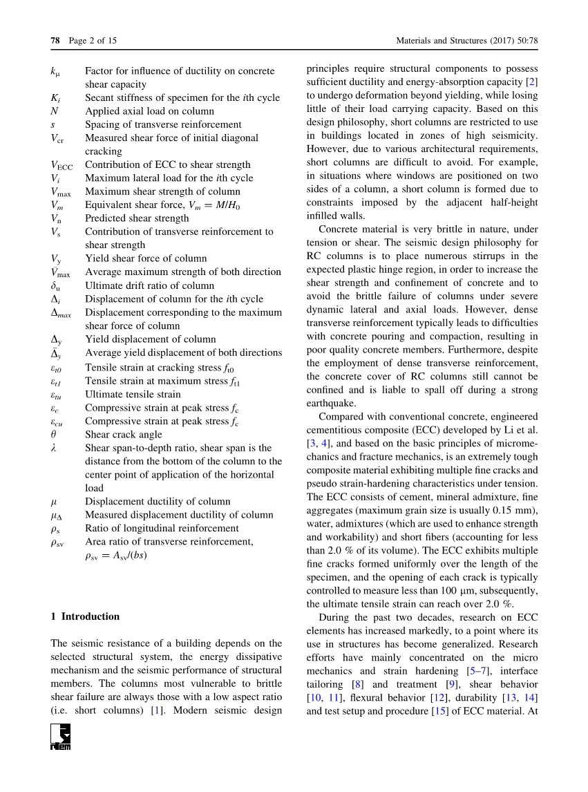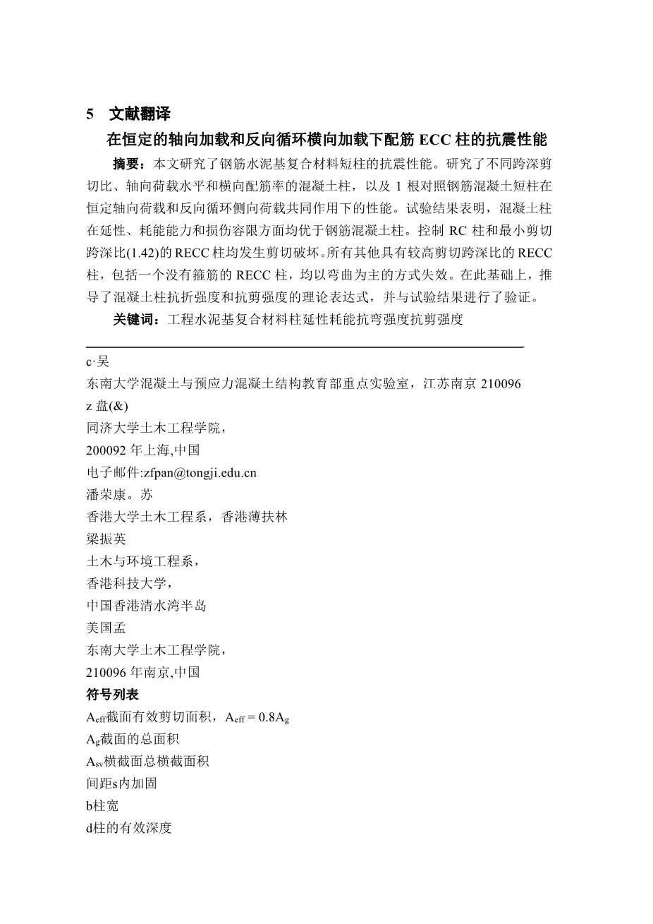 在恒定的轴向加载和反向循环横向加载下配筋ECC柱的抗震性能外文翻译资料