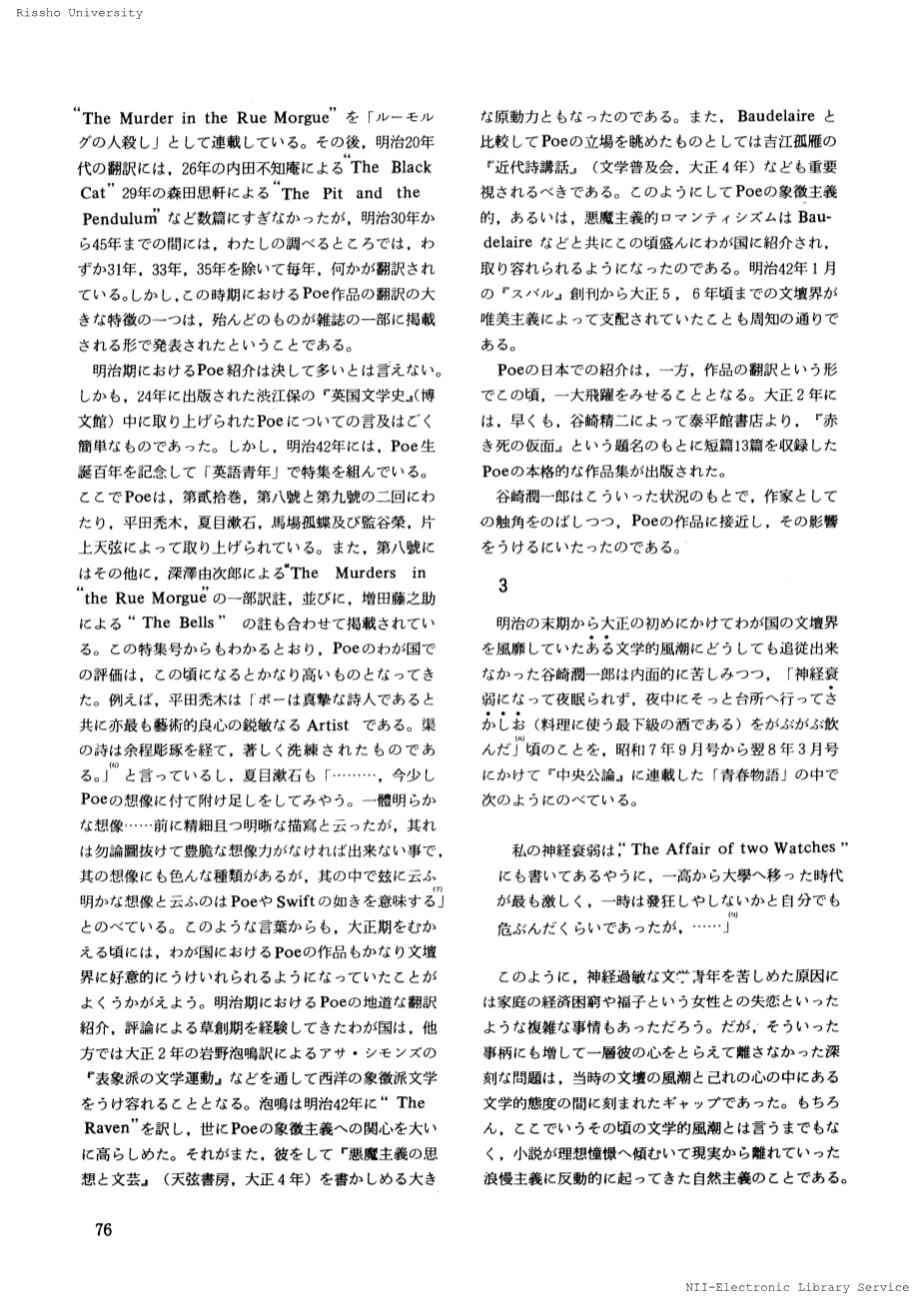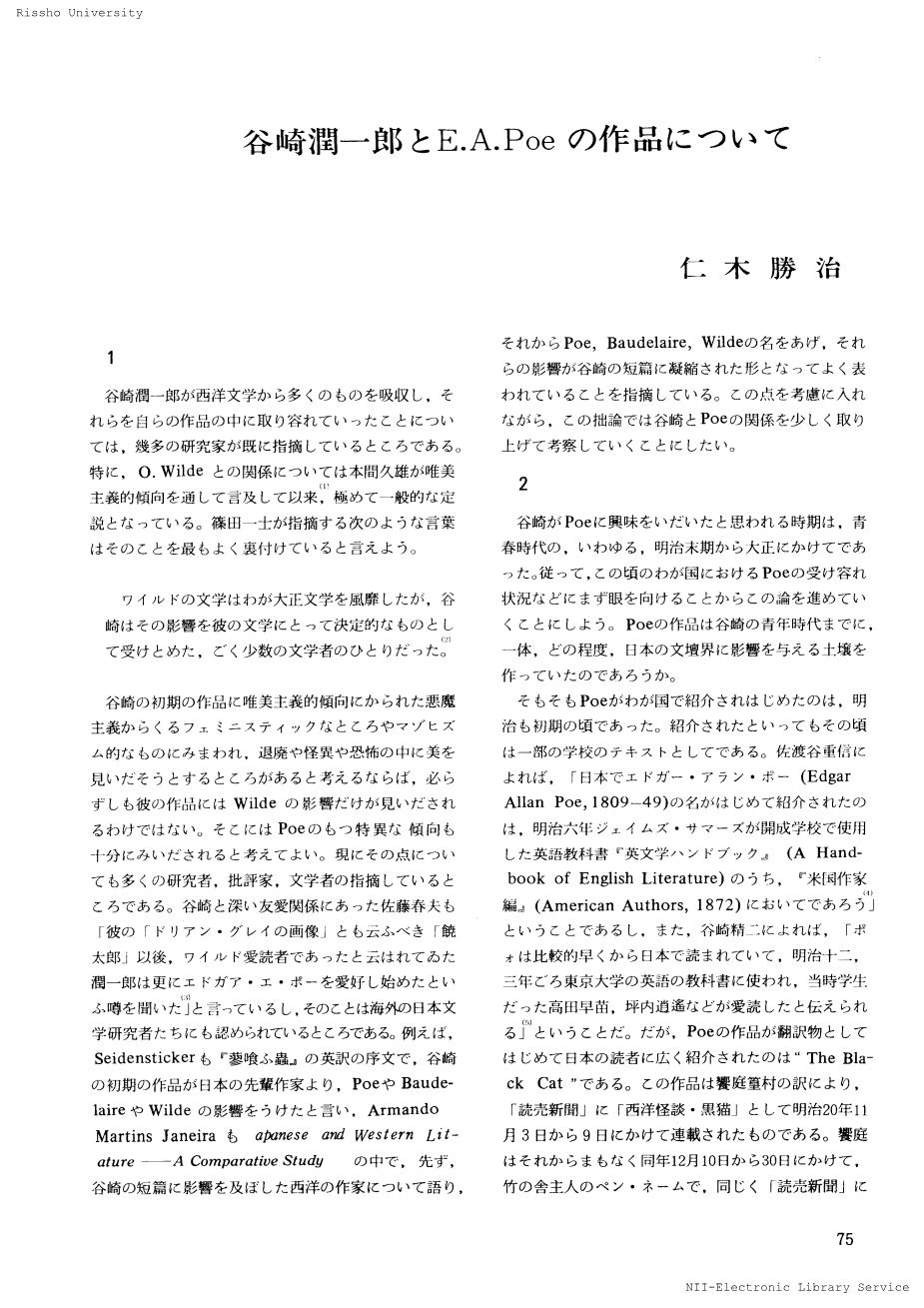 因此,笔者将在这篇拙论中,简单地探讨一下谷崎润一郎的作品与爱伦坡之间的关系。
