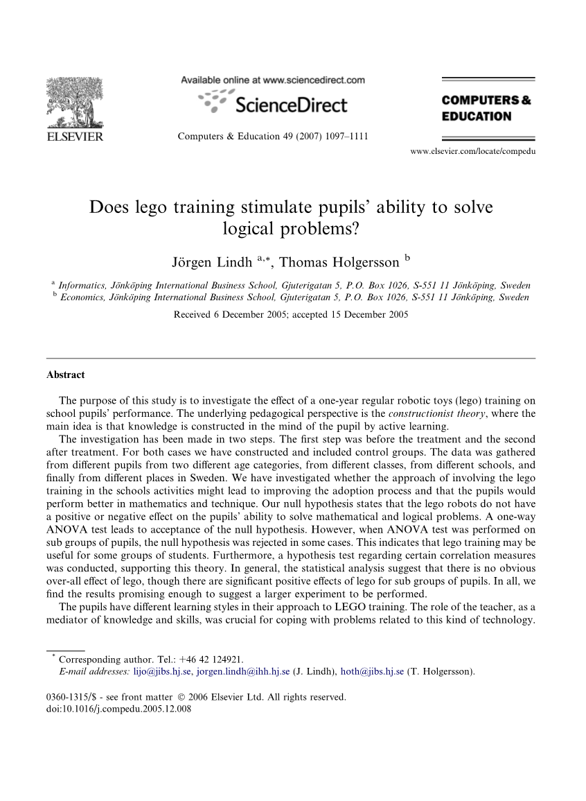 本研究旨在探讨为期一年内机器人玩具(LEGO)训练对学童表现的影响。潜在的教育学观点是建构主义理论,该理论主要思想是通过主动学习在学生的头脑中构建知识。