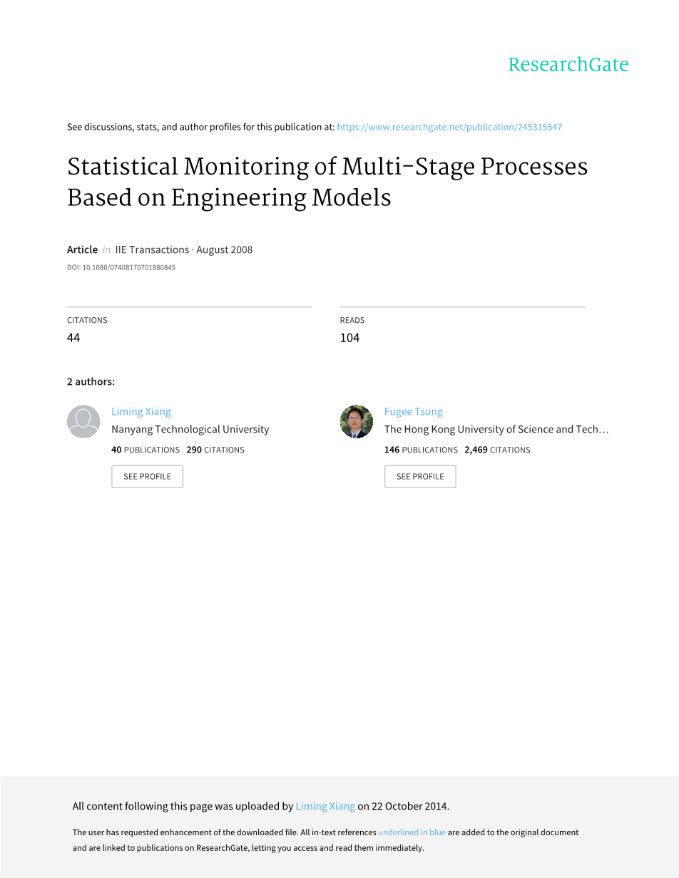 由于缺乏工程背景和知识,统计模型方法通常不能明确的描述各阶段间的关系,它的本质是合并多阶段的工程背景并分析,以更有效的过程控制和监测。因此,基于工程模型的多阶段过程监测吸引了研究者和工程师的兴趣。