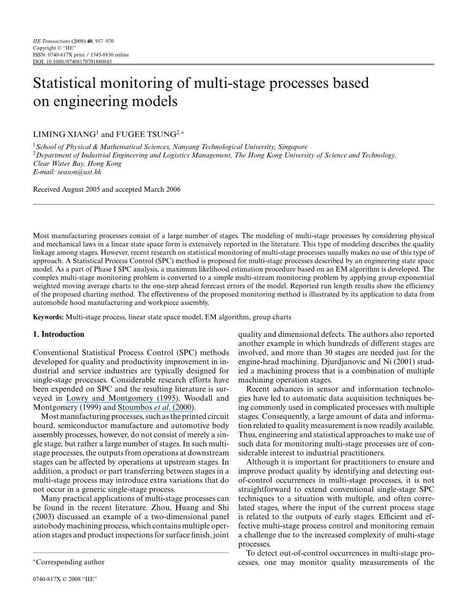 关键词:多阶段过程,线性状态空间模型,EM算法,EWMA组控制图
