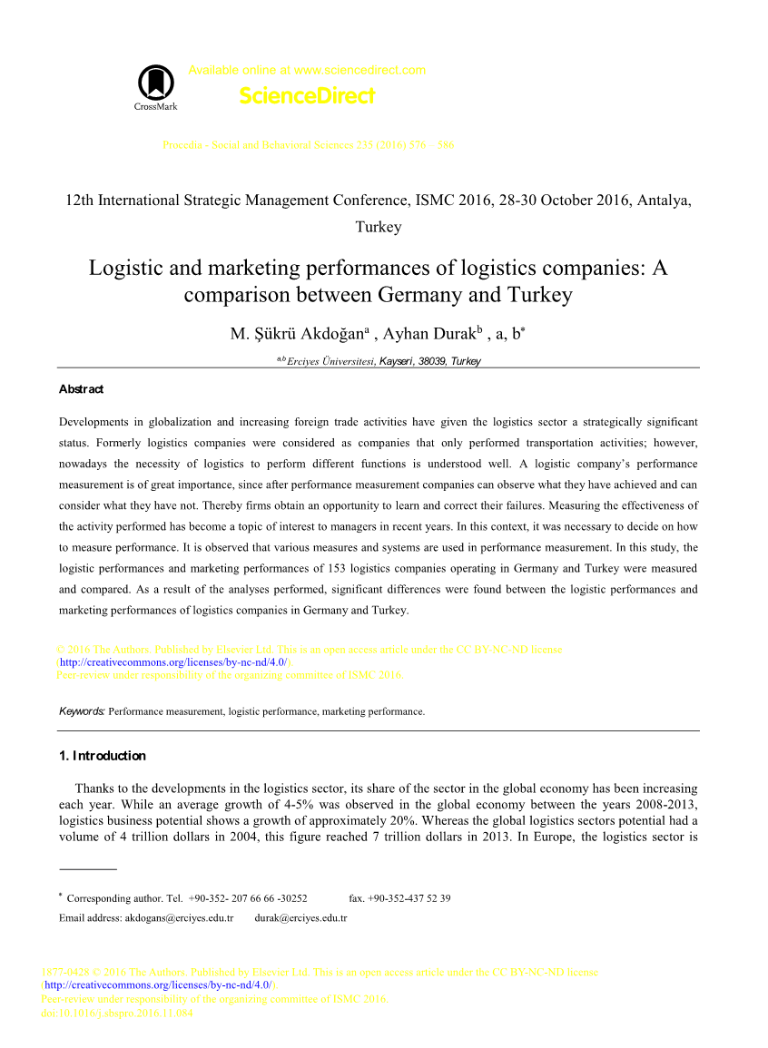 不断深入的全球化和持续增长的对外贸易活动给予了物流行业具有战略意义的地位。以前,物流公司被认为是只从事运输活动的公司;然而,现在人们对物流发挥不同功能的必要性有了很好的理解。针对物流公司的绩效评估是十分重要的。因为在绩效评估以后,企业可以看到它们已经取得的成就并且思考它们还没有获得的东西。这样,企业就可以获得一个机会去学习并改正它们的错误。近年来,评估已开展活动的有效性已经成为管理人员一个感兴趣的话题。在这方面,决定如何评价绩效是有必要的。可以看到的是,许多方法和系统都被应用在了绩效评估上。在本文中,来自德国和土耳其的153家物流企业将被评价物流和营销绩效并进行对比研究。据本研究结果来看,德国和土耳其的物流企业在物流绩效和营销绩效方面存在着显著差异。