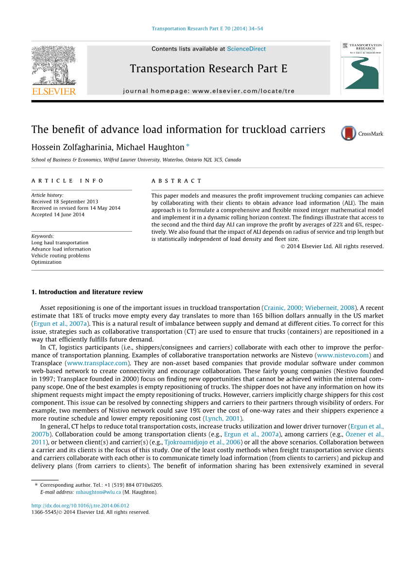 论预知装载信息对于货车承运人的益处外文翻译资料