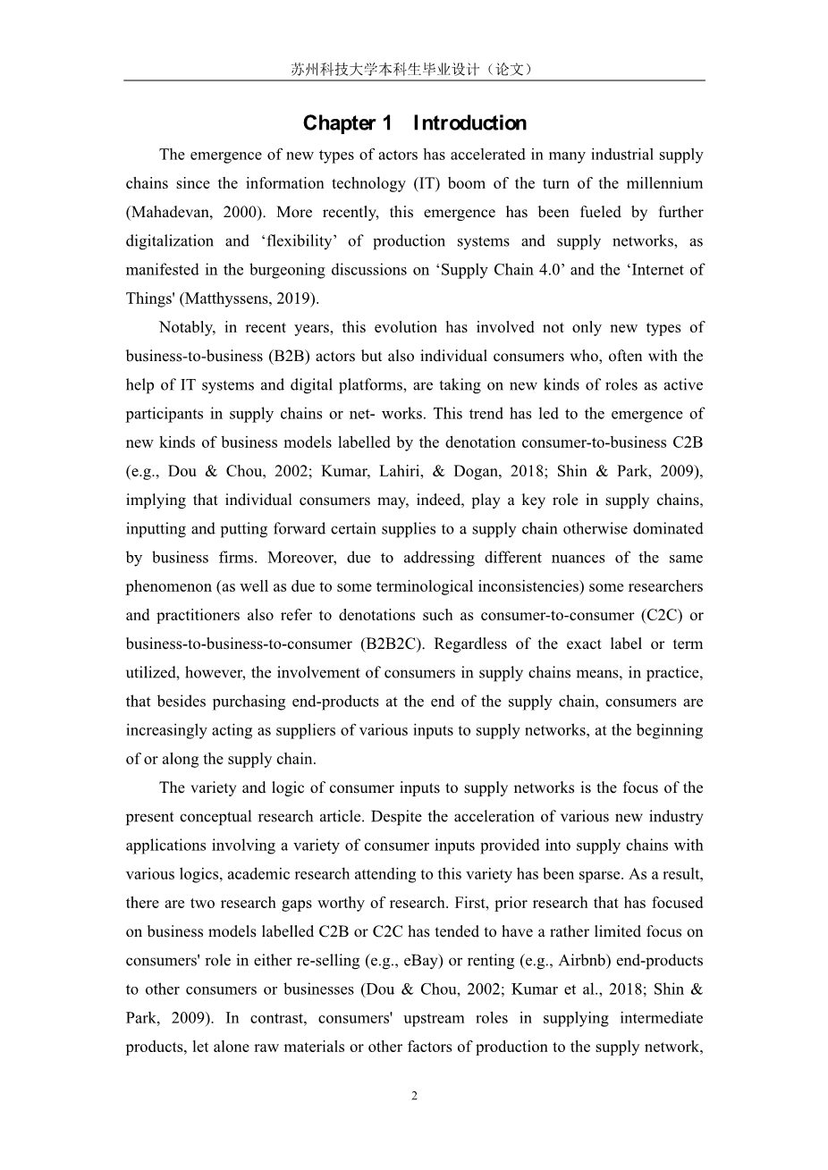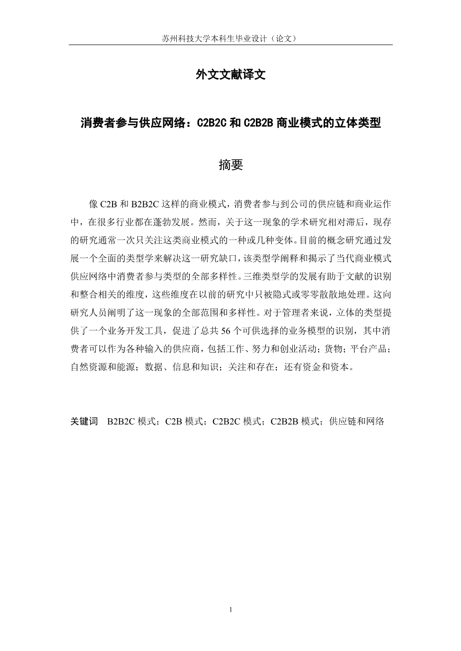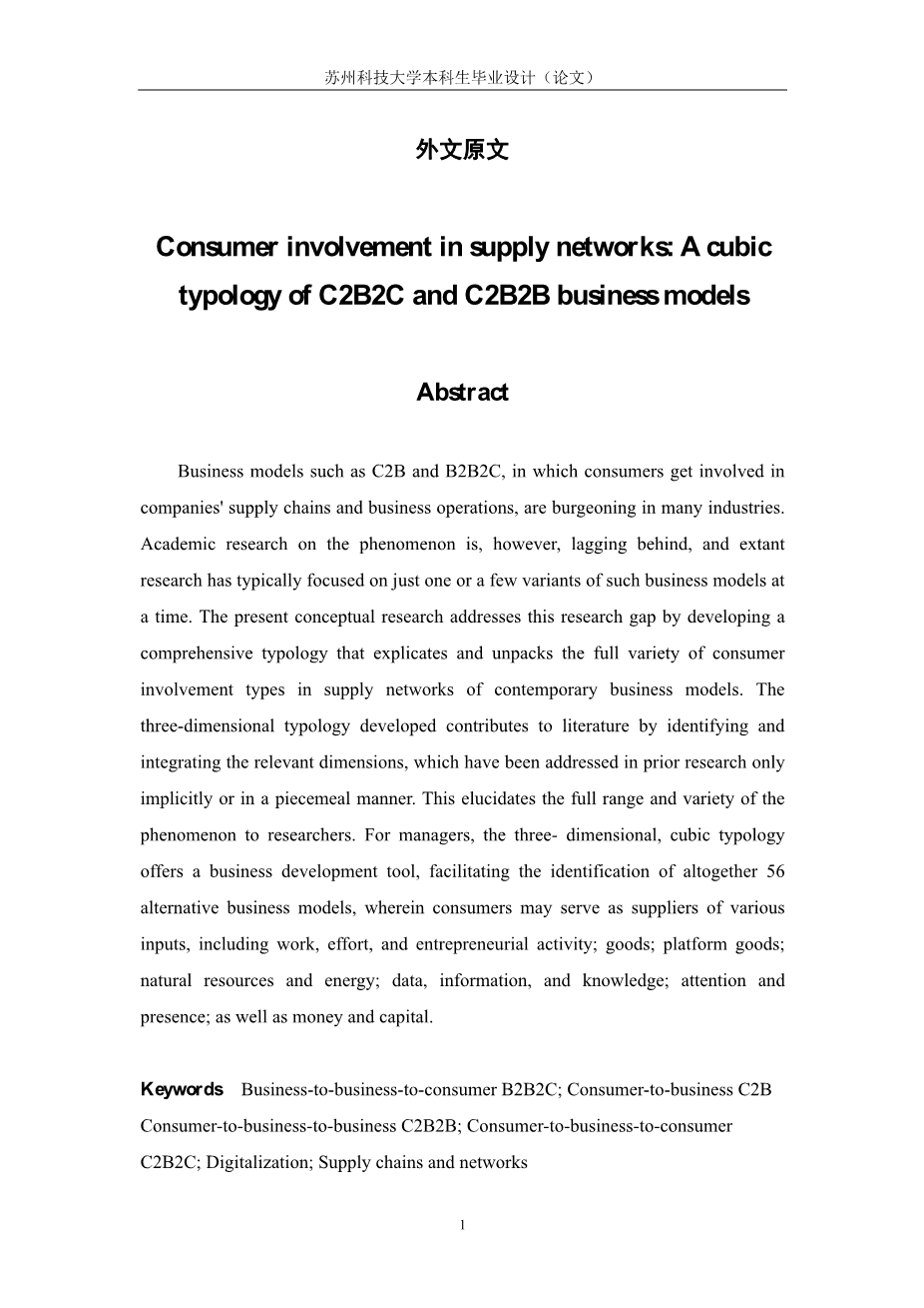 消费者参与供应网络:C2B2C和C2B2B商业模式的立体类型外文翻译资料 2023-04-18 11:52:33 英语原文共 29 页,剩余内容已隐藏,支付完成后下载完整资料 英语译文共 13 页,剩余内容已隐藏,支付完成后下载完整资料 资料编号:[588810],资料为PDF文档或Word文档,PDF文档可免费转换为Word 您需要先支付 30元 才能查看全部内容!立即支付 发小红书推广免费获取该资料资格。点击链接进入获取推广文案即可: Ai一键组稿 | 降AI率 | 降重复率 | 论文一键排版 PREVIOUS NEXT 您可能感兴趣的文章 关系契约在跨国供应链中的作用机制研究文献综述 扬子江城市群生态环境脆弱性及其驱动力研究文献综述 生鲜品冷链物流运作模式调研与改进研究文献综述 基于HAZOP-LOPA方法的冷链物流金融风险分析开题报告 基于服务供应链的港口服务供应商选择评价研究开题报告 民营快递加盟连锁模式研究——以圆通速递为例开题报告 共享经济下的供应链运作模式研究开题报告 基于拉格朗日松弛的运输调度问题求解文献综述 供应链中供需协调策略及价格折扣订货模型研究文献综述 生态供应链创新 绩效分析:一个案例开题报告