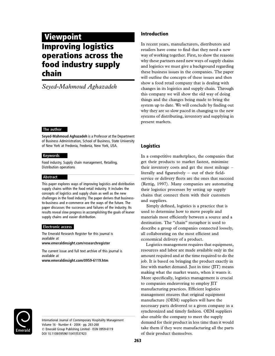 食品伙伴之间食品协调的情景 电子零售商,制造商和批发商很难,总是敢于改变来满足新的需求。转向未来,食品行业正试图专注于睦邻关系 、电子商务系统,以及一种新的系统,进一步结合在一起,为客户带来低恒定的低价格。它在伦敦的一次会议上揭幕,这标志着高潮 在卢瑟福钠的第一阶段工作和开始一个雄心勃勃的计划,以提高竞争力和传播最佳实践,消费者错误地放在所有计划和行动的中心。论坛-一个合作的肉类和牲畜委员会、环境、食品和农村事务部以及全国农民联盟结成伙伴关系,目的不是帮助英国红肉勤劳 提高面向消费者的产品的竞争力、不可能性和质量。代替作为供应链,这个行业的部分部分是IKEA蜘蛛网。有很多昂贵的监管 、投资不足、透明度不足、不可能性低、相互不信任和进口渗透日益增长的历史。第一个和止血器的重要点是由论坛建立的 一些实际赚钱的最佳实践供应链(McCoy,2002)。维萨利亚公司的一项试点研究和分析表明,数据同步将节省忒修斯的食品服务 由于改善供应链不足,行业每年超过11亿$。