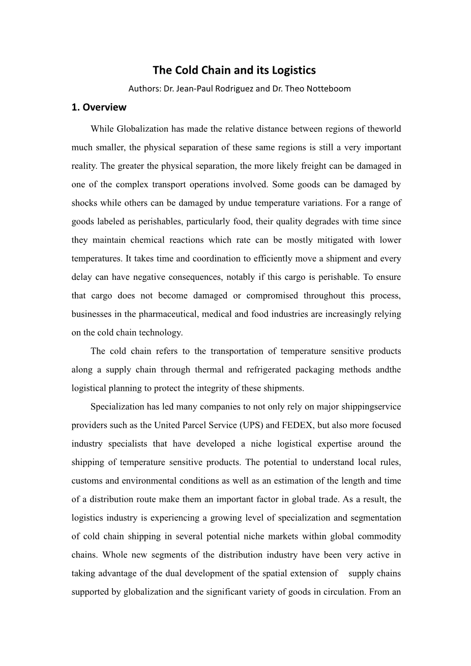 冷链及其物流外文翻译资料