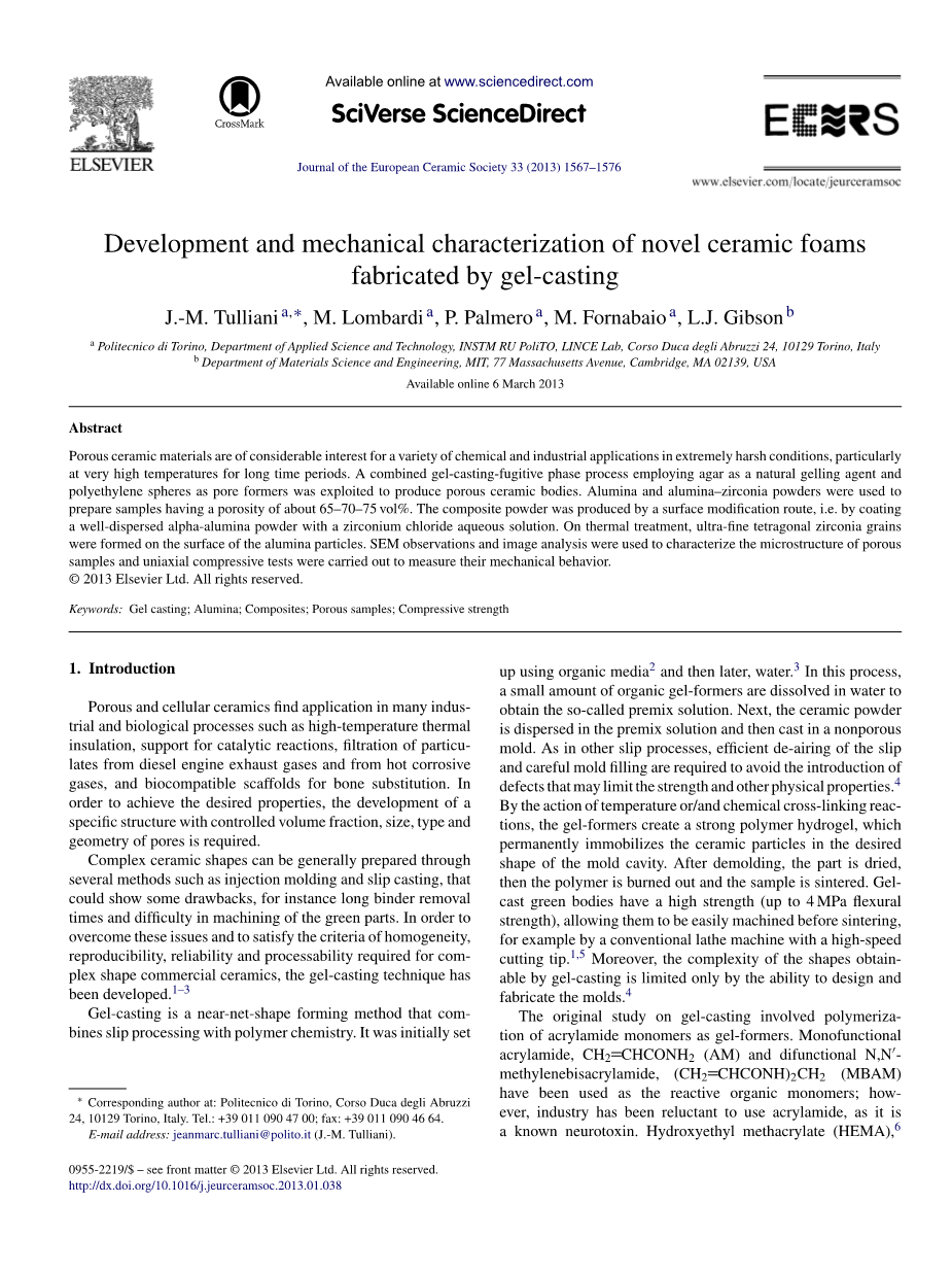 通过凝胶注模制造的新型陶瓷泡沫的发展和机械表征