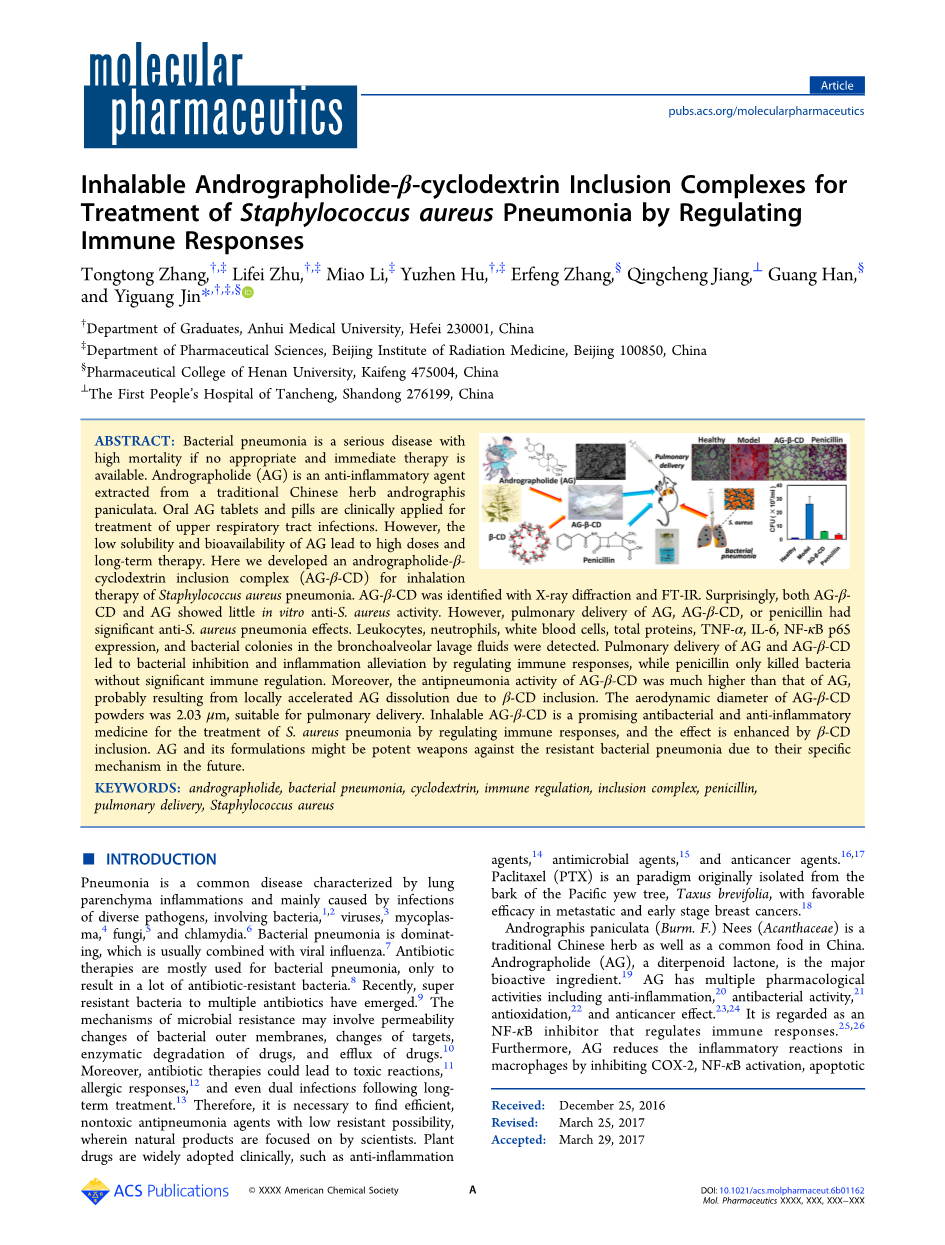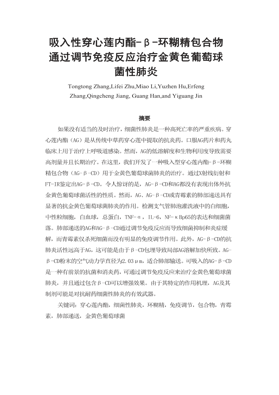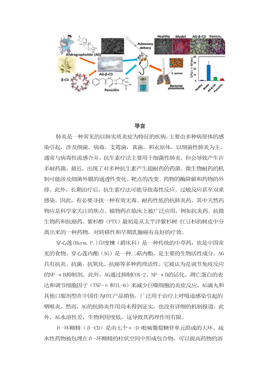 - 吸入性穿心莲内酯- β -环糊精包合物 通过调节免疫反应治疗金黄色葡萄球 菌性肺炎外文翻译资料