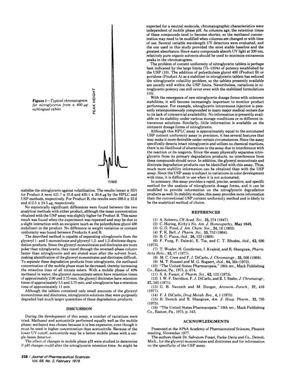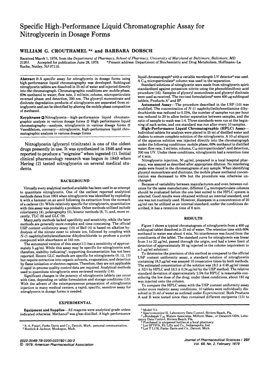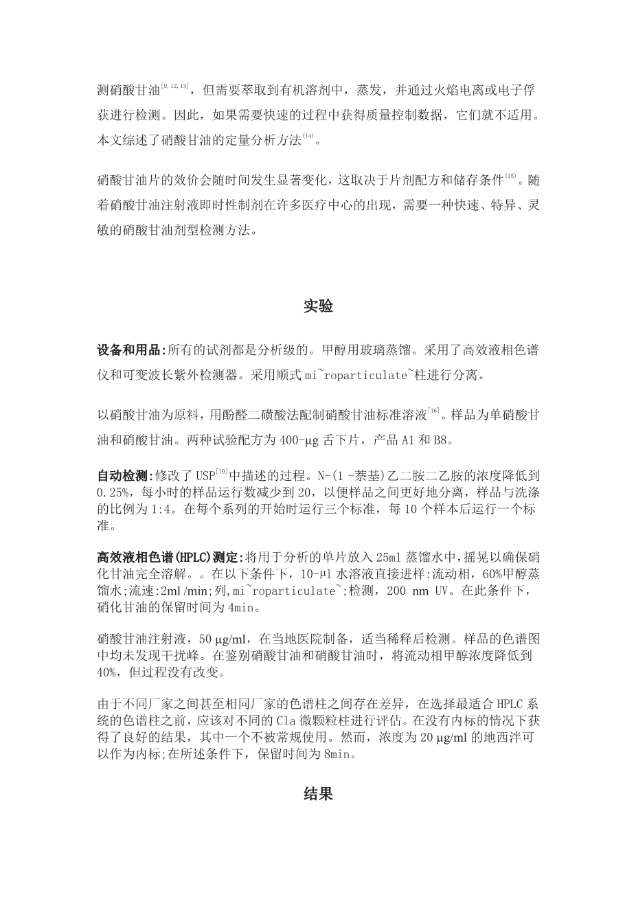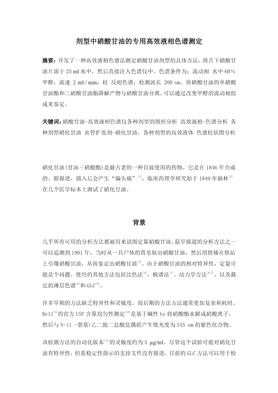 - 剂型中硝酸甘油的专用高效液相色谱测定外文翻译资料