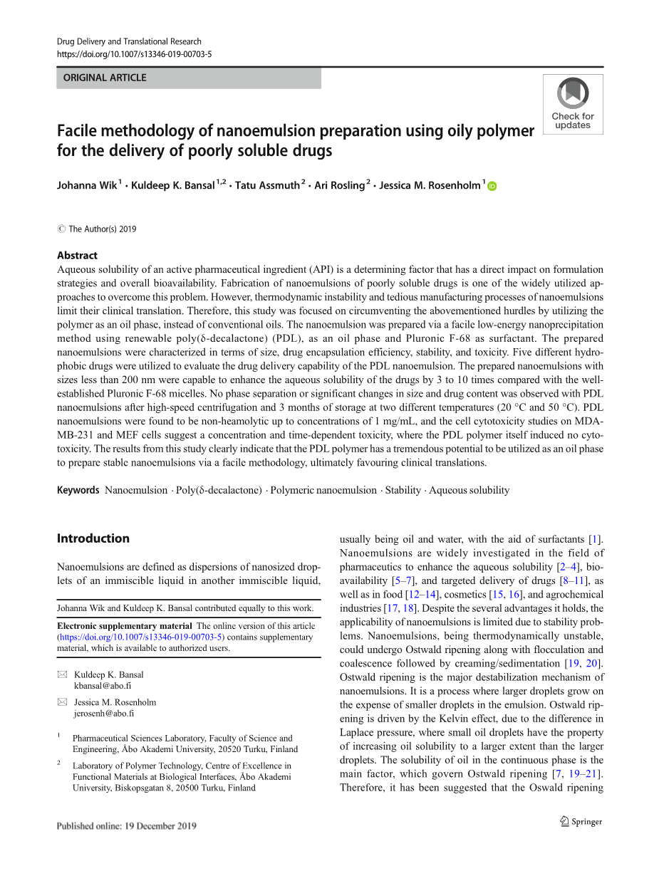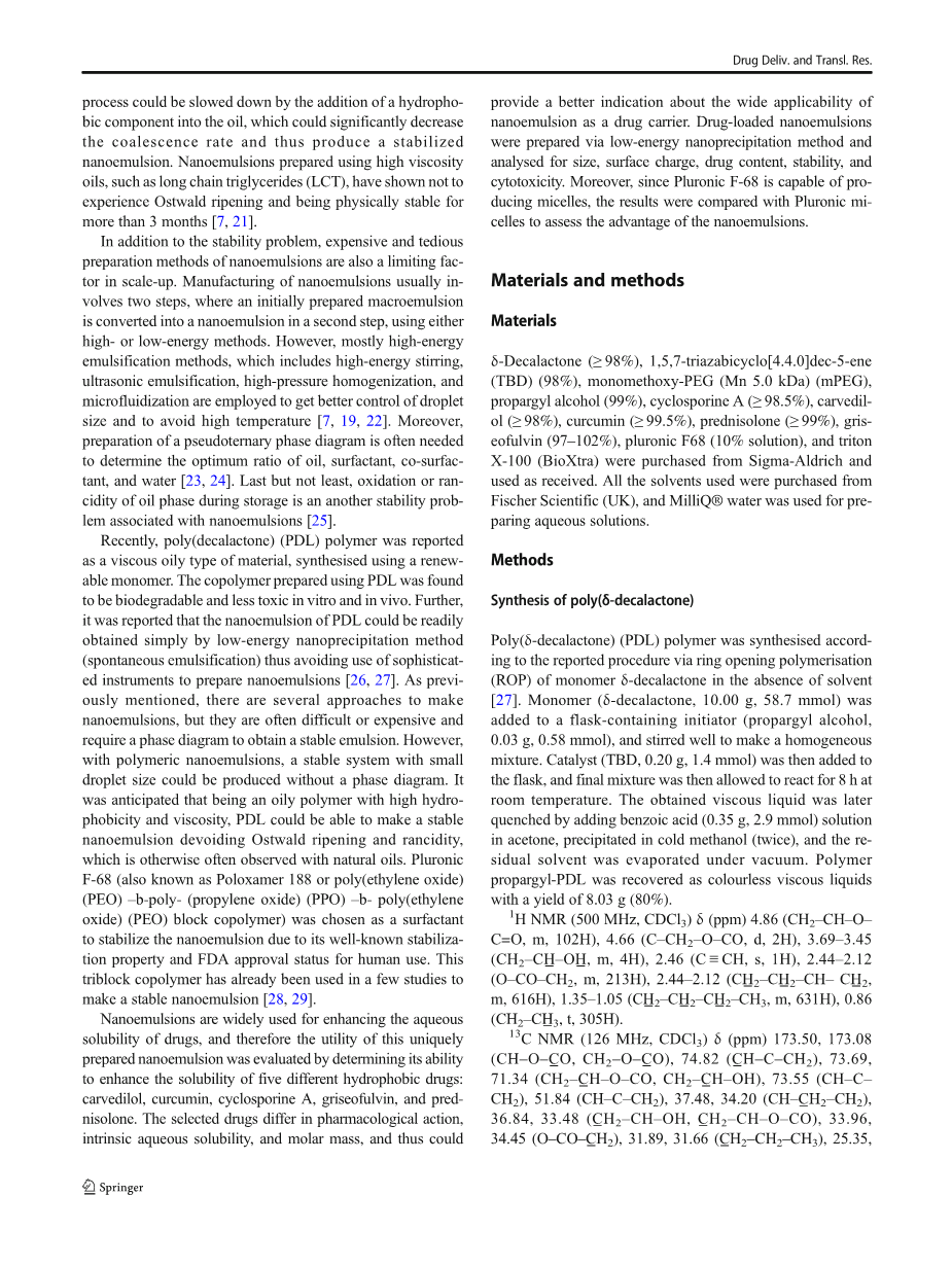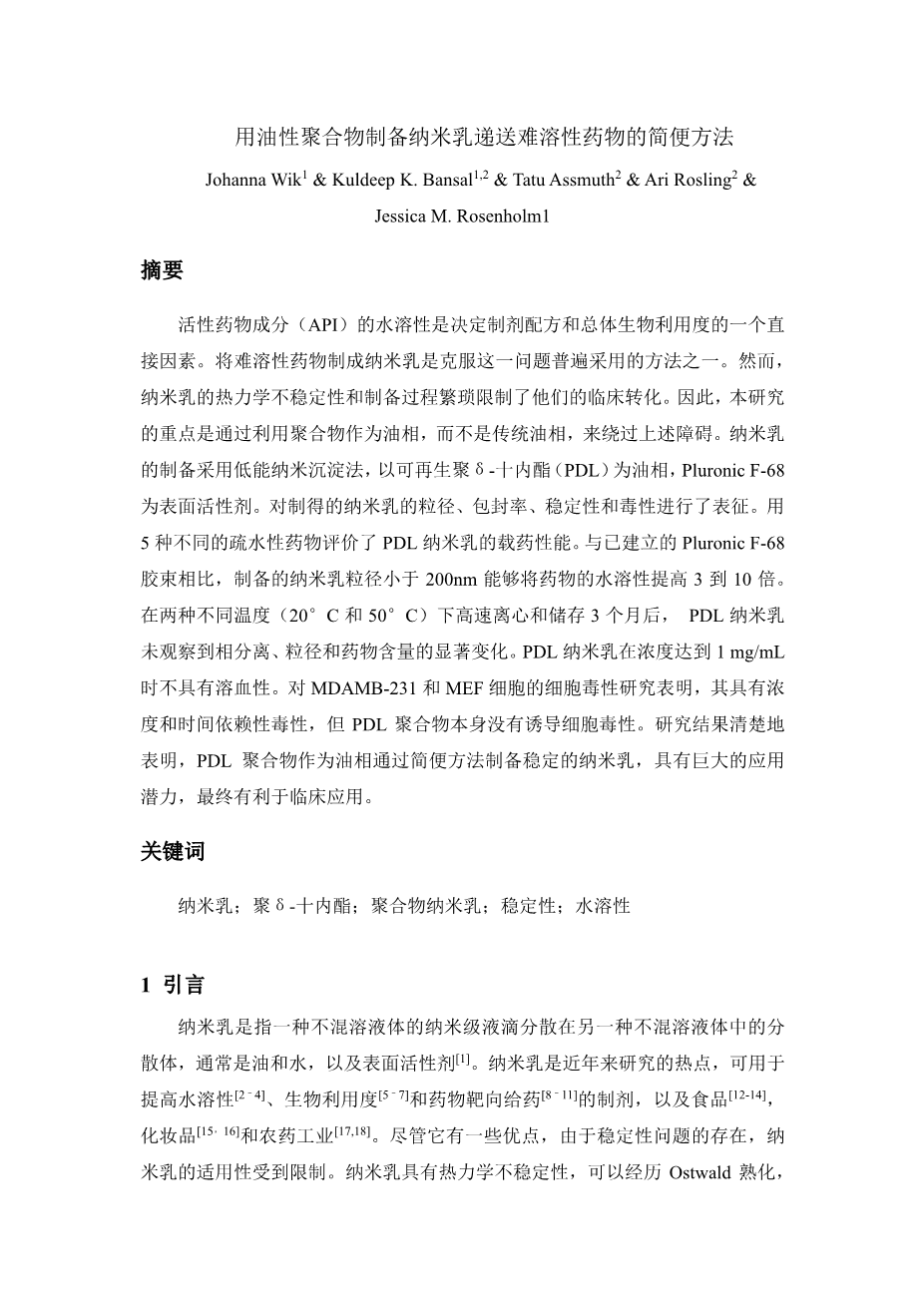 - 用油性聚合物制备纳米乳递送难溶性药物的简便方法外文翻译资料