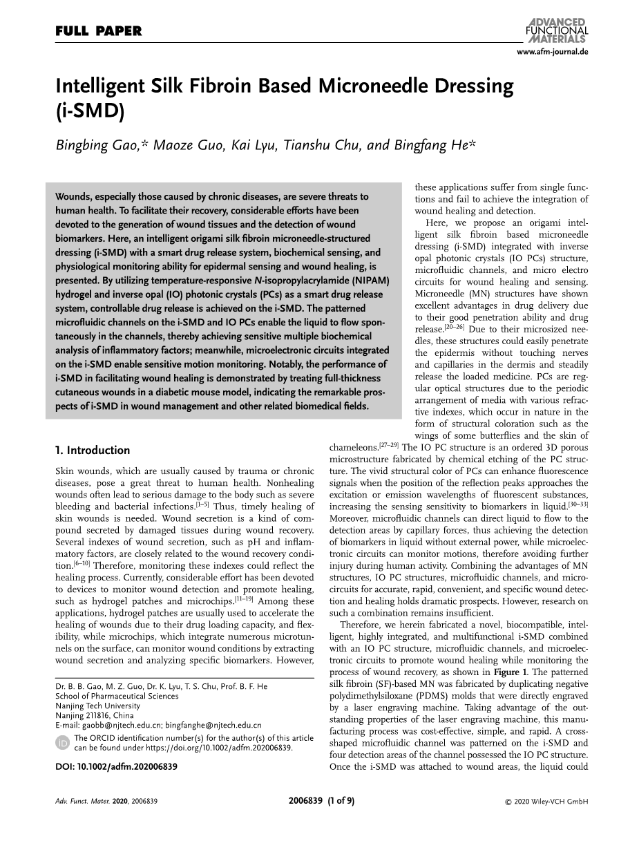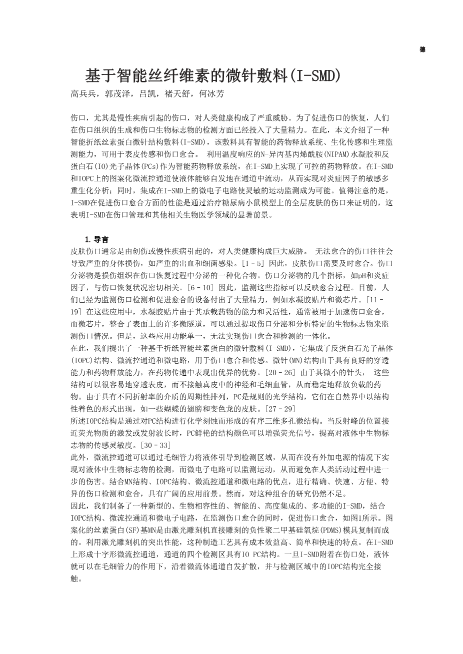 - 基于智能丝纤维素的微针敷料(I -SMD)外文翻译资料