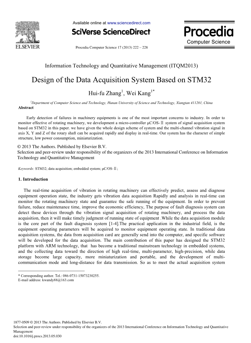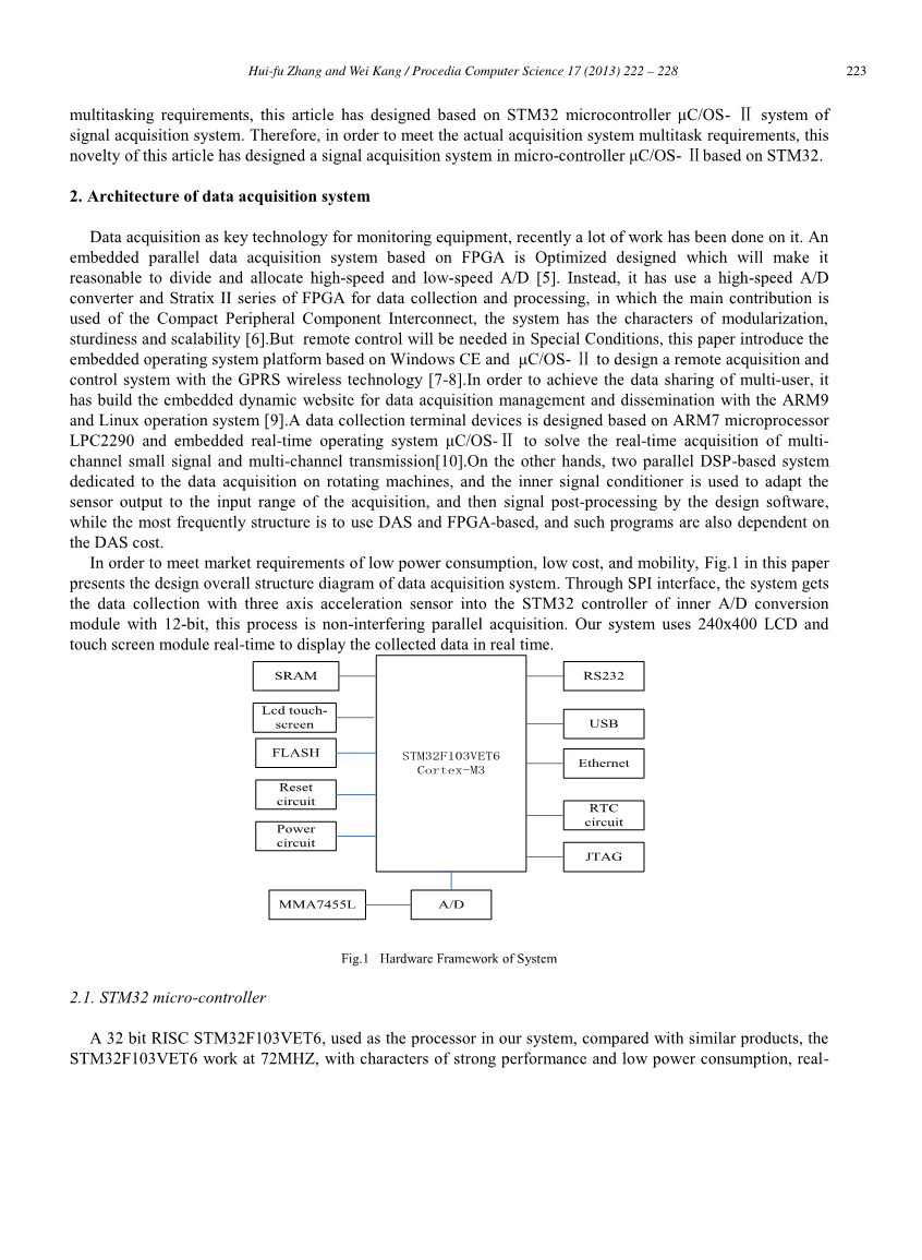 在机器刚出现故障的时候,如何去发现故障的机械设备是很重要的一个行业性难题。为了实现对旋转机械的有效监控,我们开发一个基于STM32的信号采集系统。在这个论文中,我们给出了整个系统的设计方案,,同时我们解释了如何实现对多通道振动信号X,Y和Z旋转轴的数据迅速获取,也解释了在获取数据后如何实现对数据进行实时显示。我们设计的系统具有简单的结构特点、低功耗、小型化的优点。