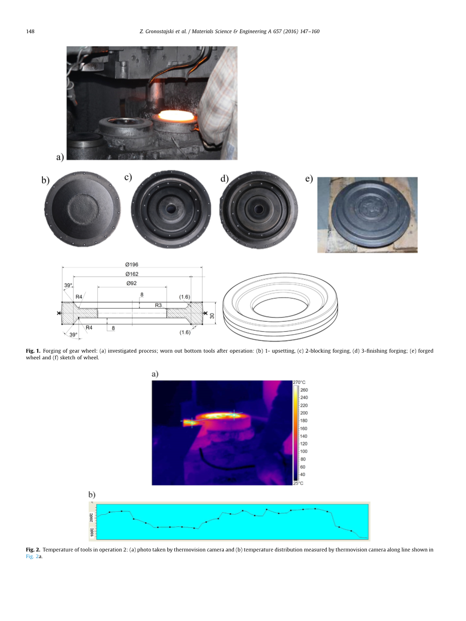 工具上的温度如图1所示。 2b。最初的坯料的温度为1150-1170℃(锻造温度)。由于在第二和第三操作中的工具用石墨悬浮液润滑,因此它们的温度第一、第二和第三约是500℃,250℃和250℃。锻造过程由人工控制步骤,一个周期的时间为14-17秒。锻造材料为钢1.7147。