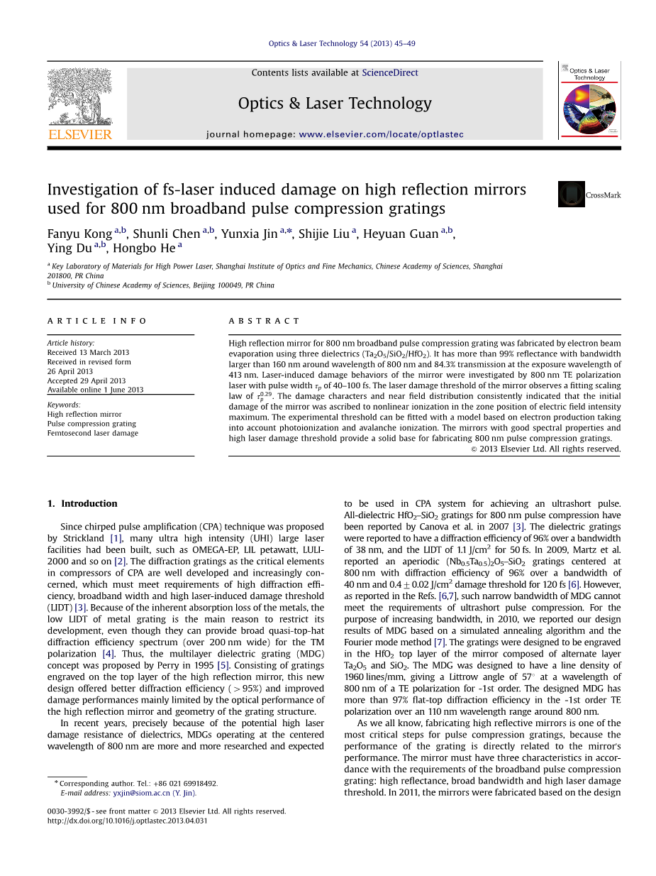 关键词:高反射镜、脉冲压缩光栅、飞秒激光损伤。