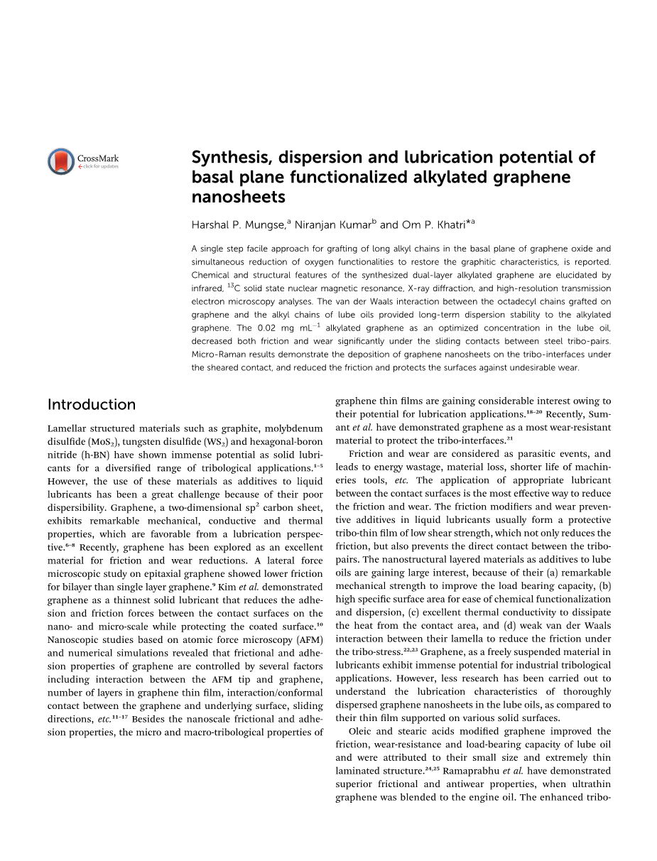 Harshal P. Mungse,aNiranjan Kumarb和Om P. Khatri *a