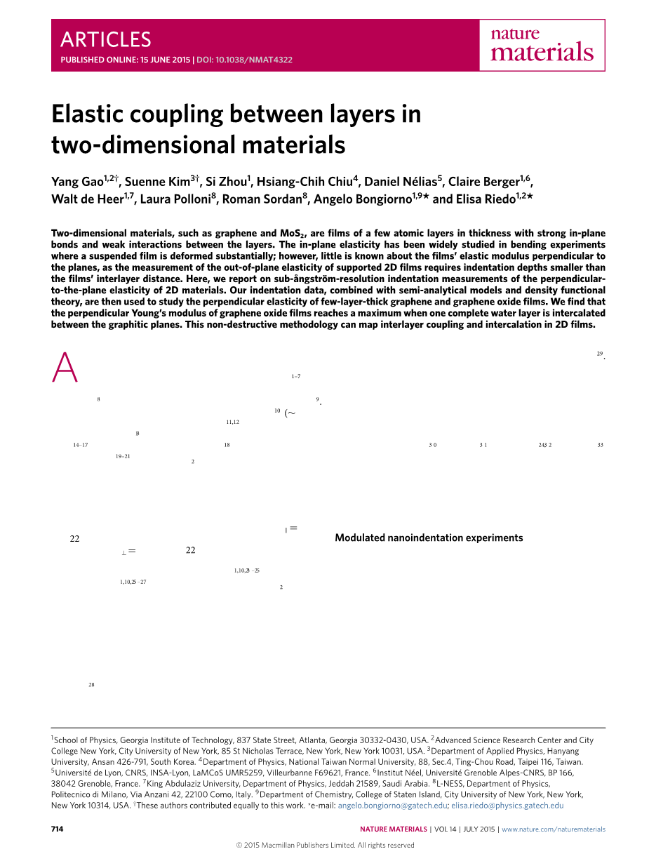 Yang Gao1,2, Suenne Kim2, Si Zhou2,3,Hsiang-Chih Chiu3, Daniel Neacute;lias4, Claire Berger5, Walt de Heer6, Laura Polloni8, Roman Sordan, Angelo Bongiorno and Elisa Riedo1,2