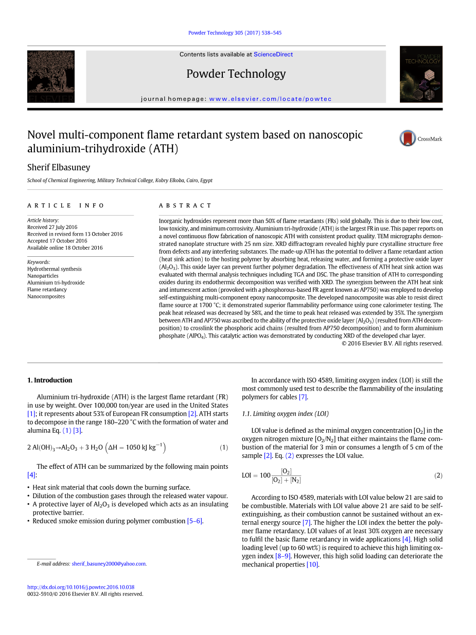 原文作者:Sherif Elbasuney 单位:Powder Technology