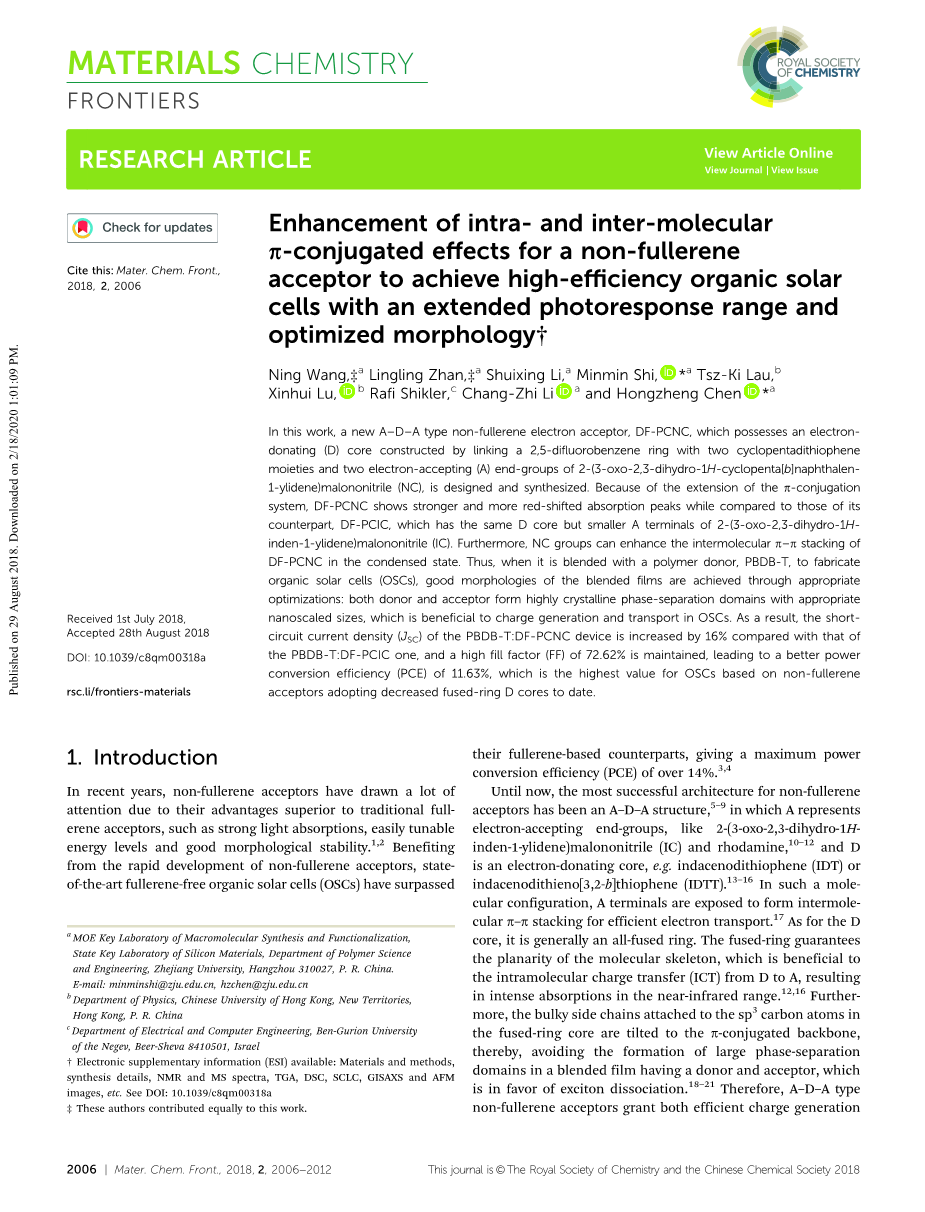 原文作者: Ning Wang, Lingling Zhan, Shuixing Li, Minmin Shi, Tsz-Ki Lau, Xinhui Lu, Rafi Shikler, Chang-Zhi Li and Hongzheng Chen