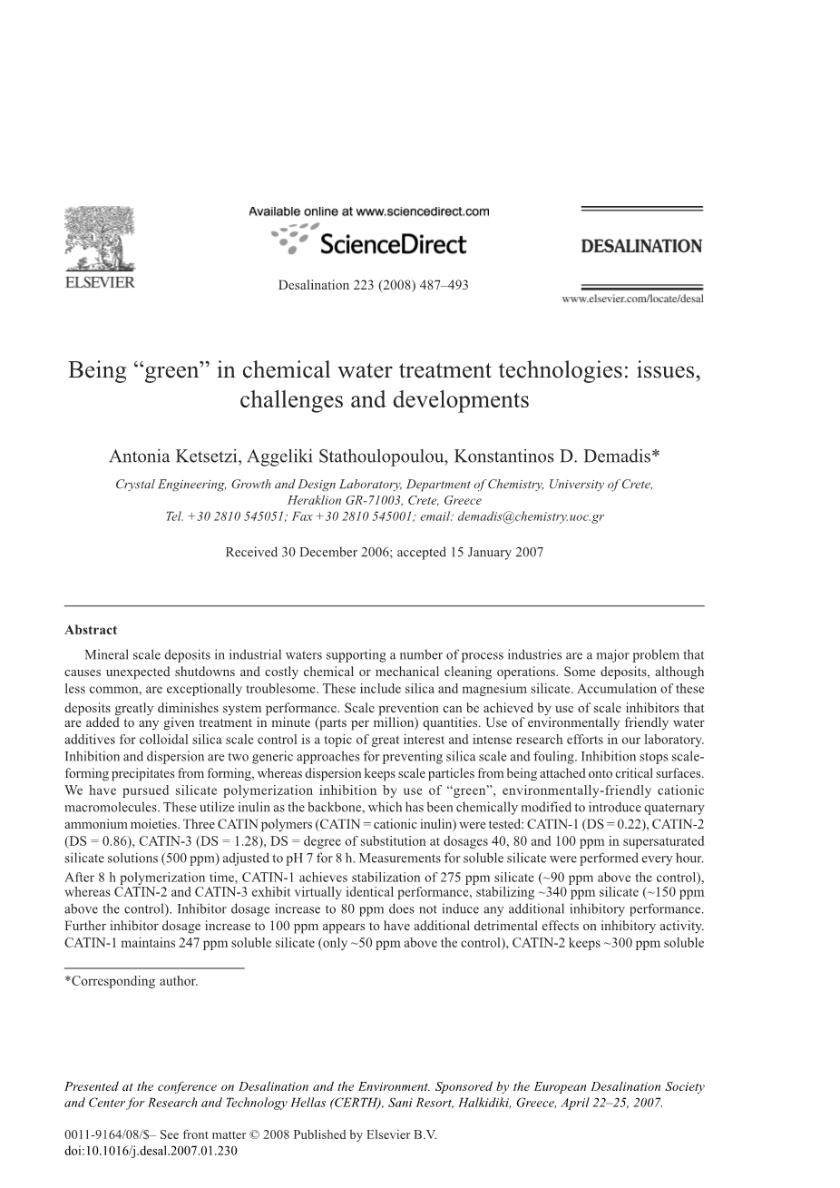 Antonia Ketsetzi, Aggeliki Stathoulopoulou, Konstantinos D. Demadis*