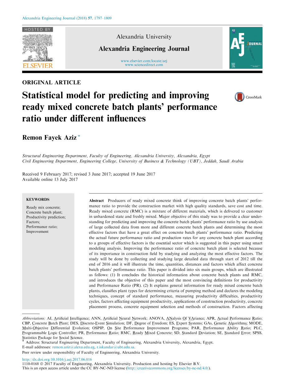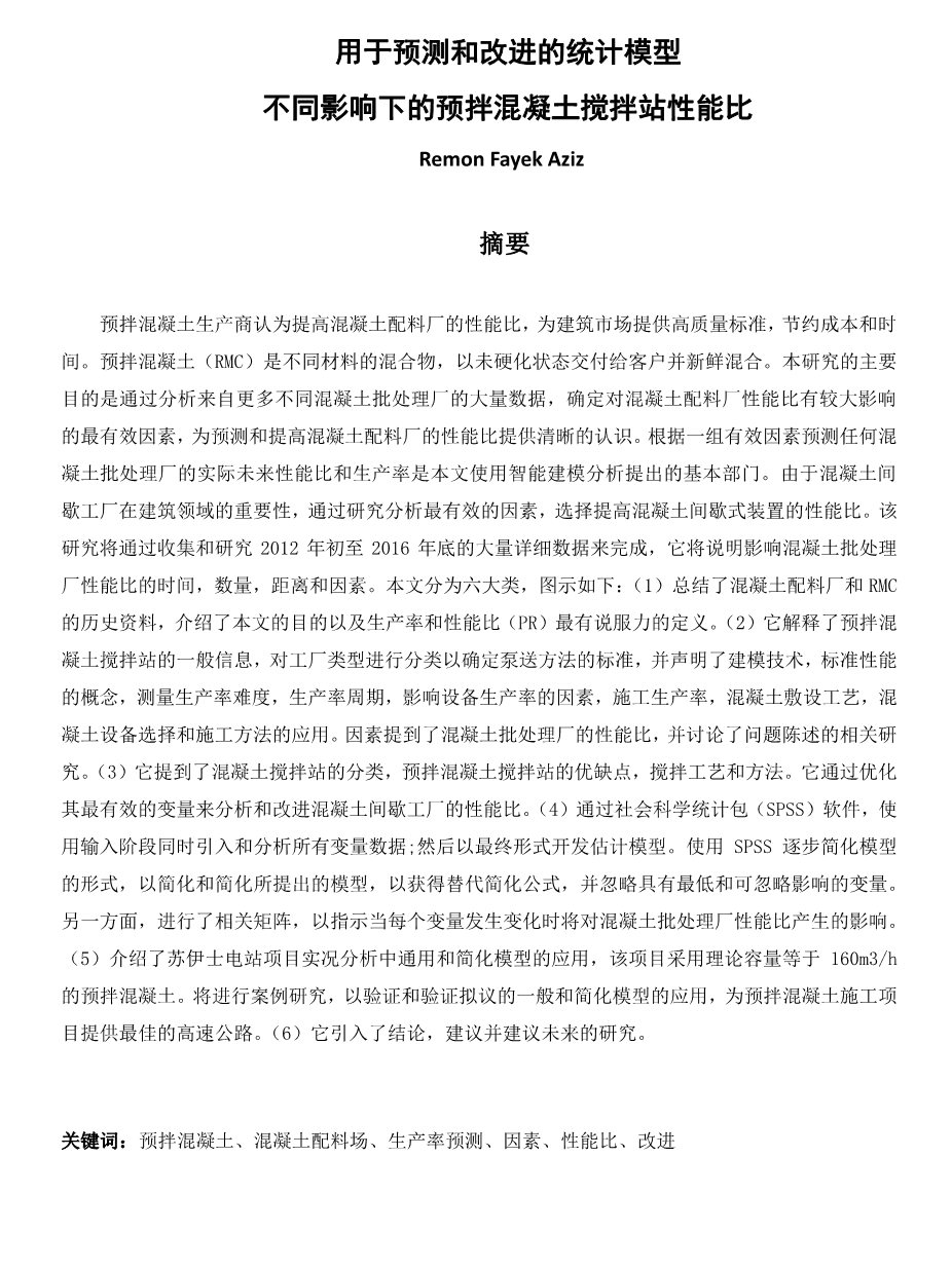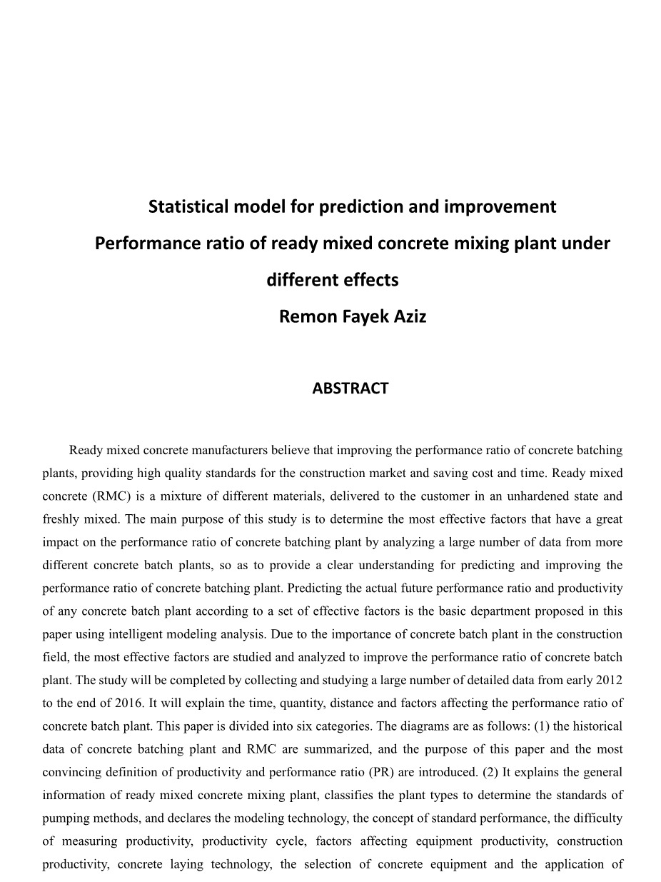 预测和改进预拌混凝土批量设备在不同影响下性能的统计模型外文翻译资料