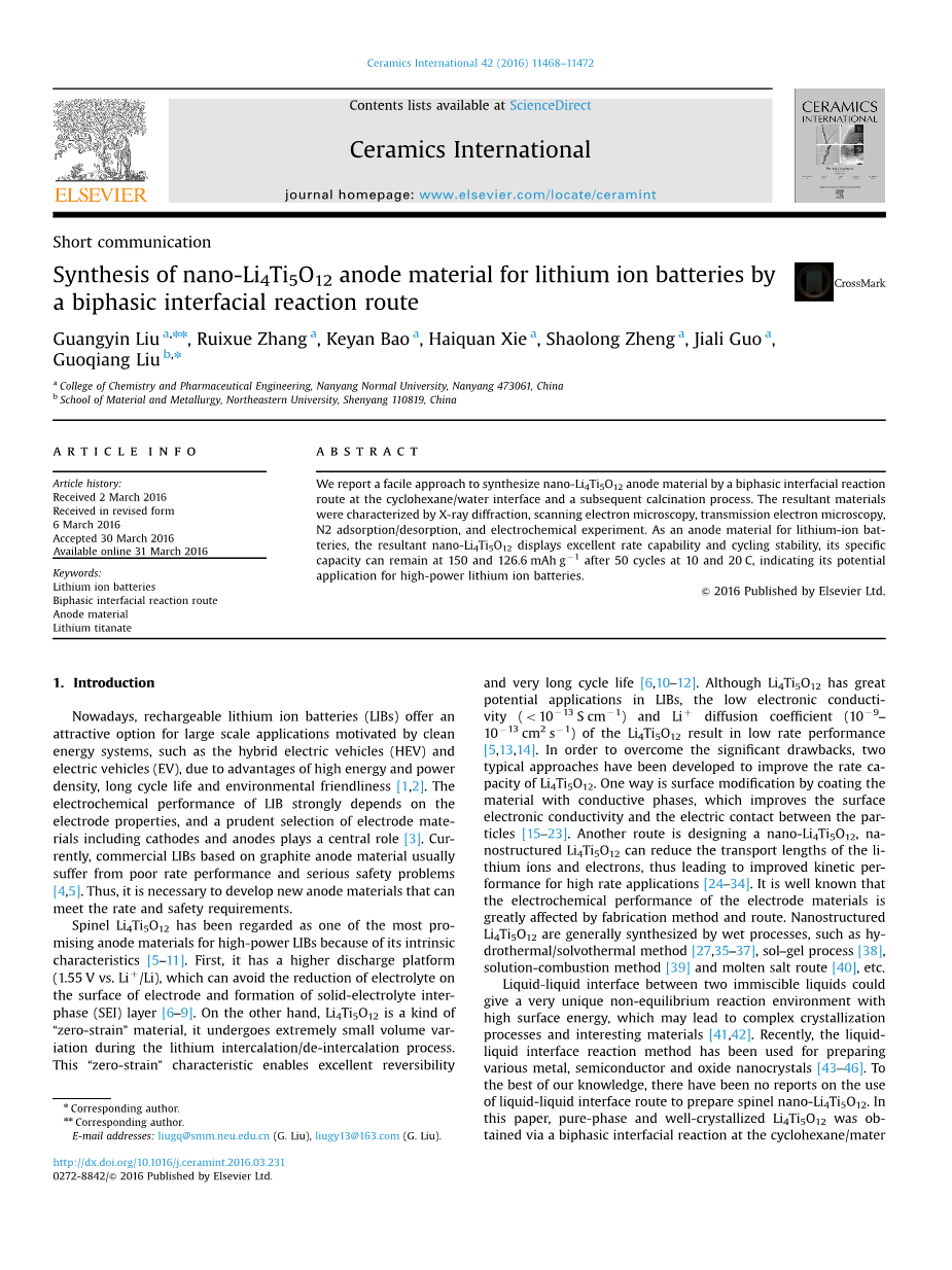 Guangyin Liu a,nn, Ruixue Zhang a, Keyan Bao a, Haiquan Xie a, Shaolong Zheng a, Jiali Guo a, Guoqiang Liu b,n