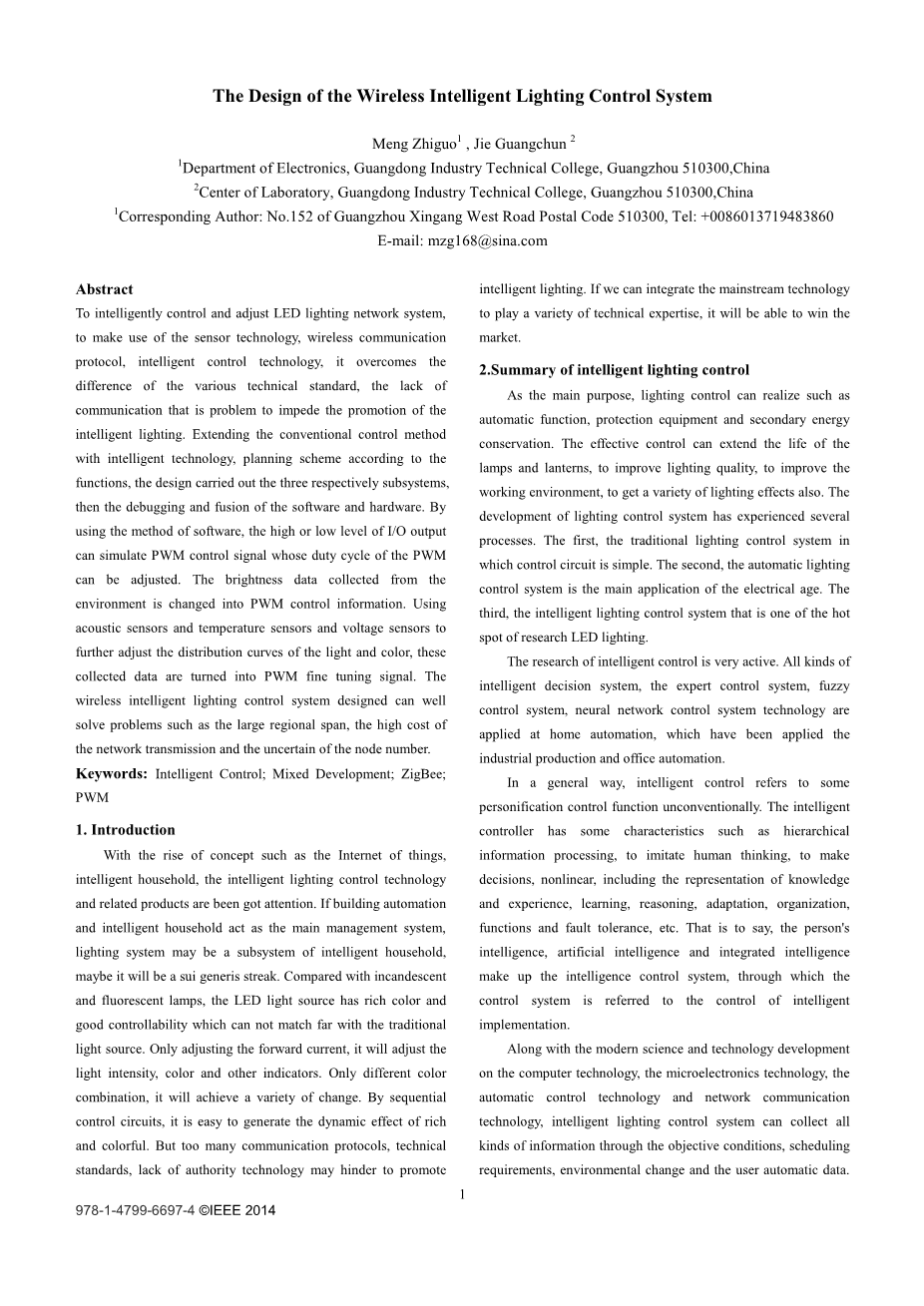 [4]Wang Wei.et al.Green lighting-semiconductor lighting intelligent control principle an