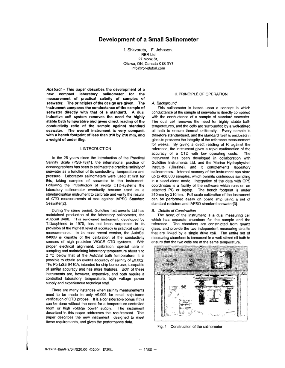 [2] Kalashnikov, P.A., Shkvorets, I., Yu. Egorov Yu.,I.1998 Metrological Support of Salinity, Temperature and Pressure Measurements using CTD Systems. Physical Oceanography 9-1 pp 71-77
